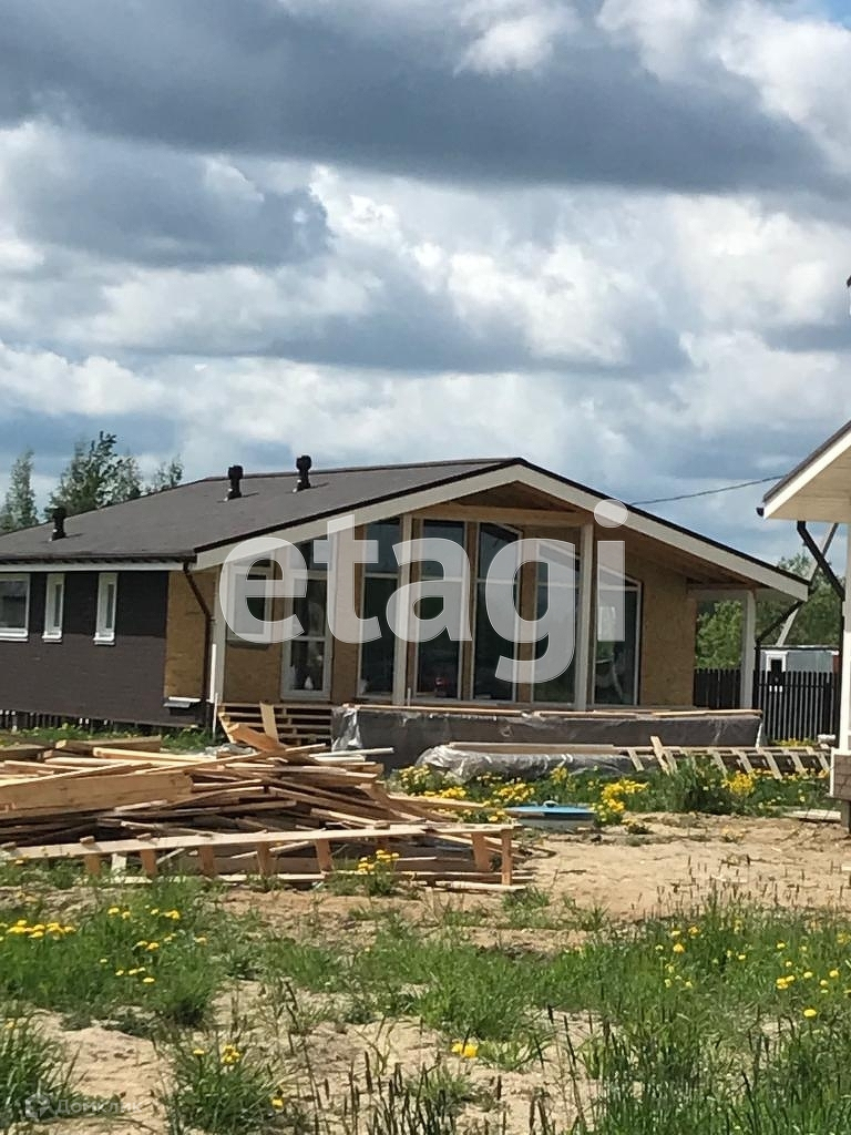 Дом возводится по каркасной технологии. Внутри дома окрашены стены, в комнатах уложен ламинат, на кухне и в санузле плитка, оснащен сантехникой и электрокотлом.