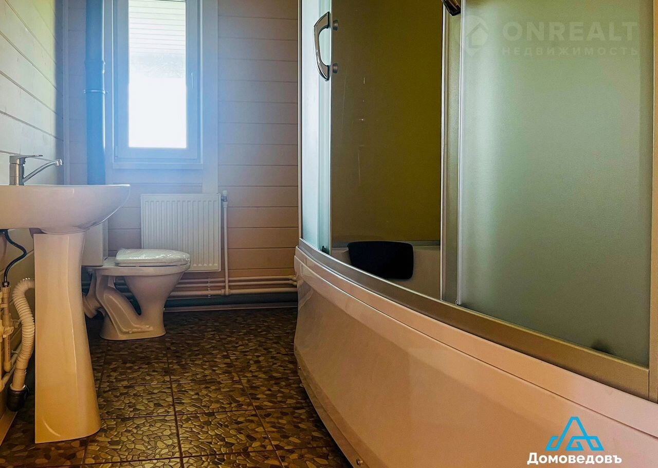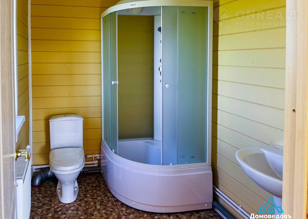 - Вода – скважина на участке, водонагреватель, вода проведена в кухню и санузлы. В двух санузлах – две душевые кабины, две раковины, два унитаза, смесители.
