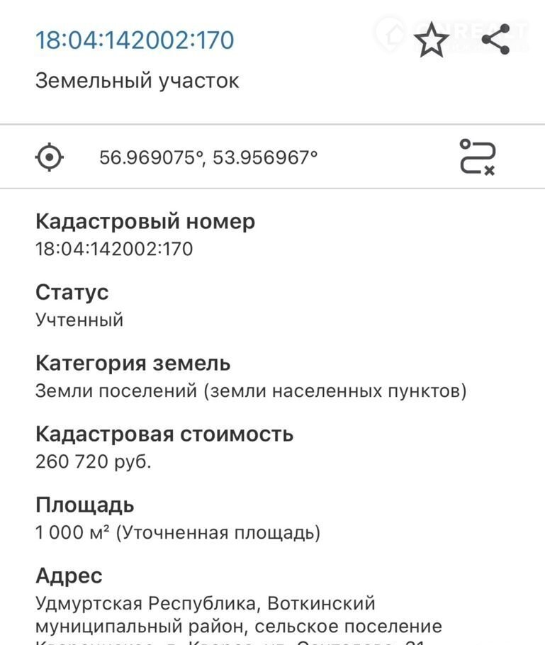 Кадастровый номер: 18:04:142002:170.
