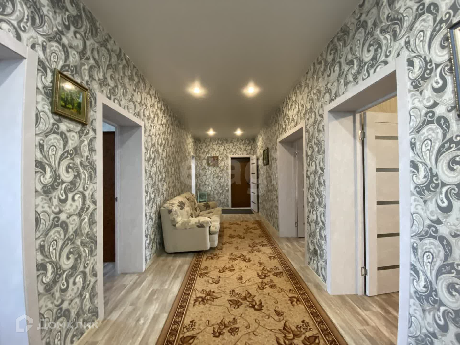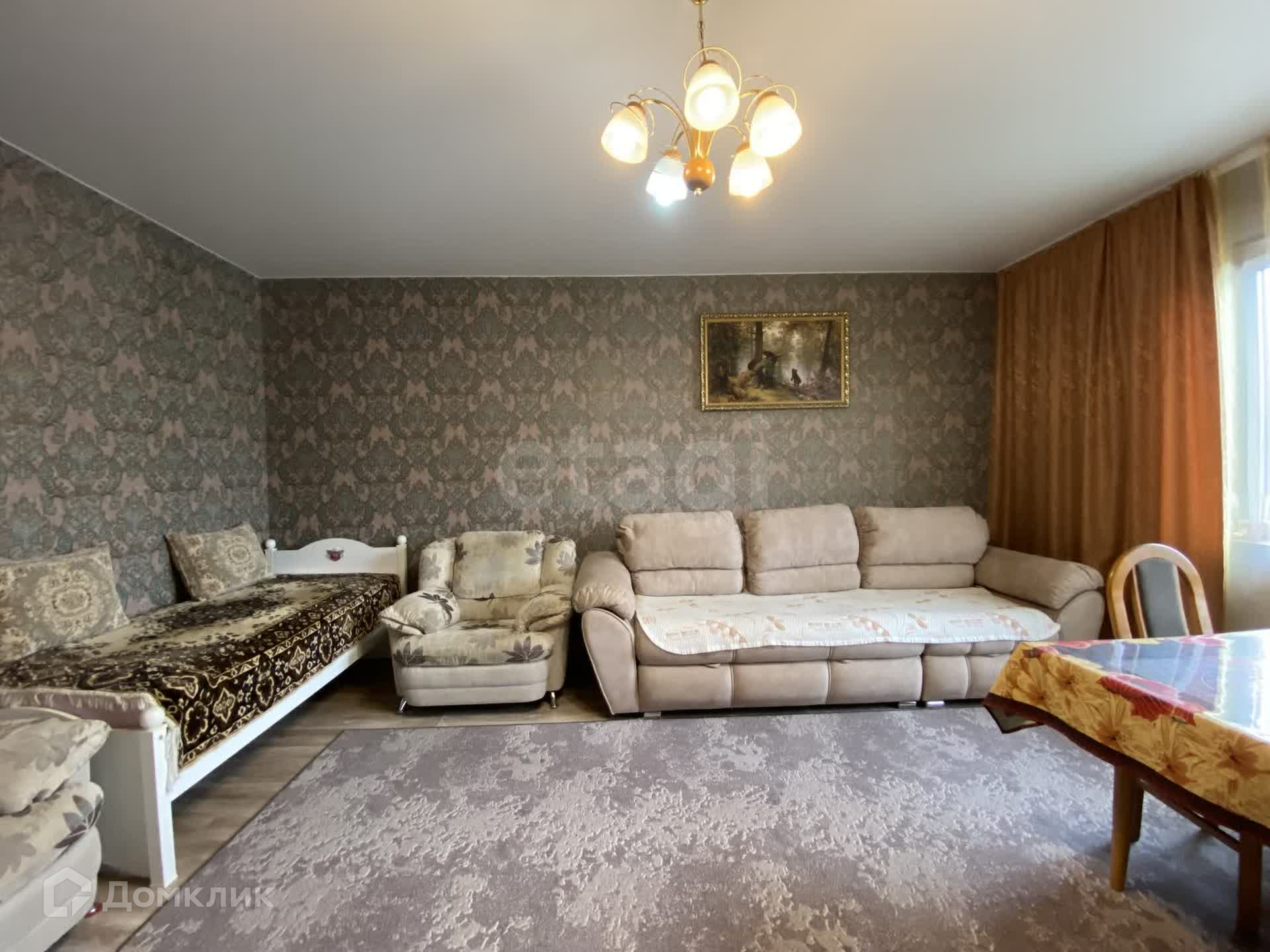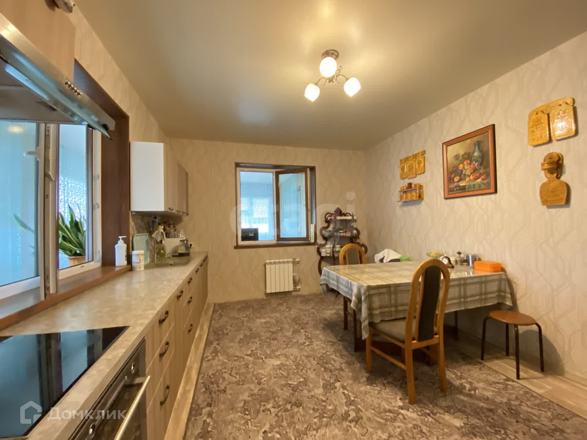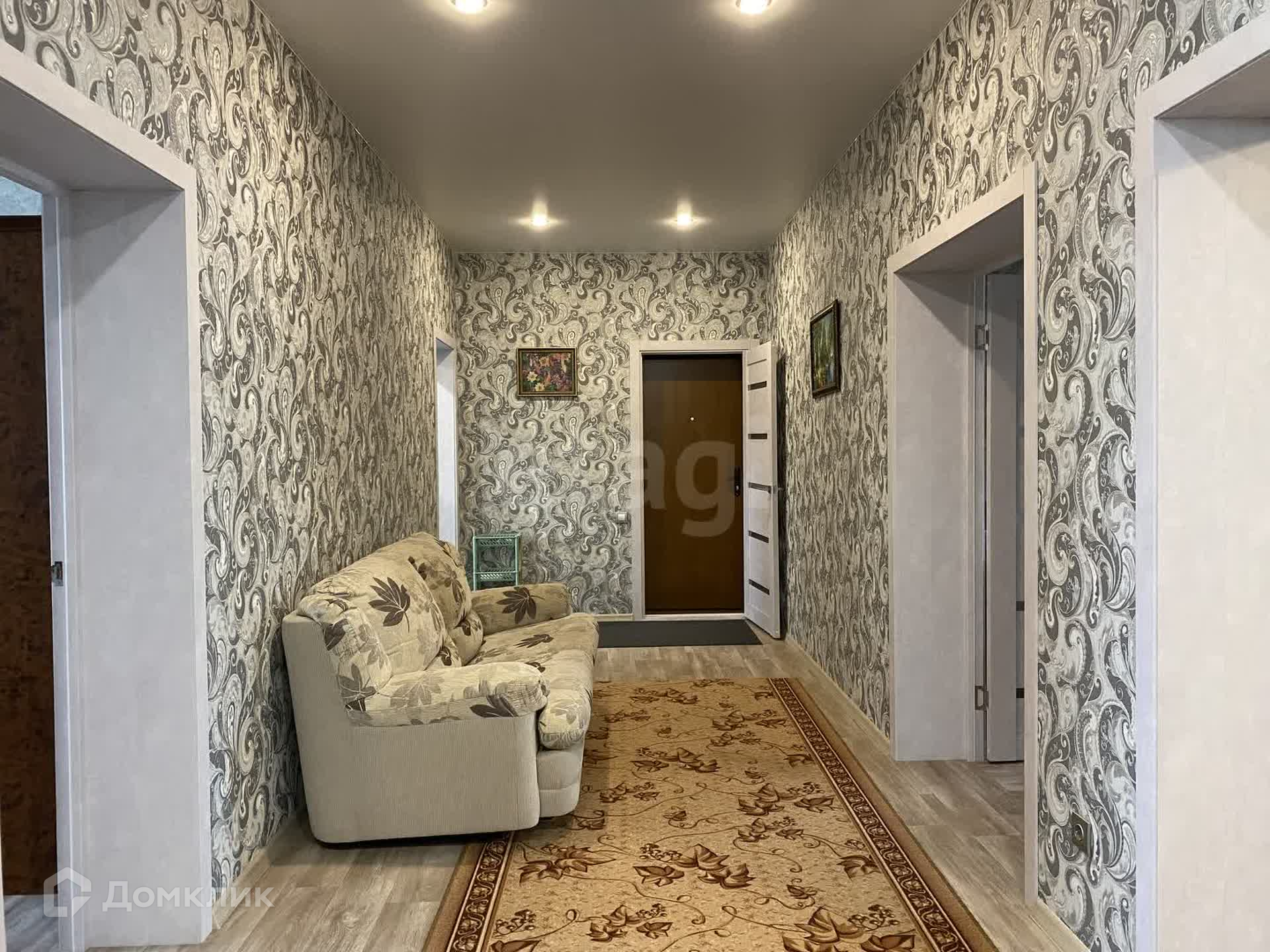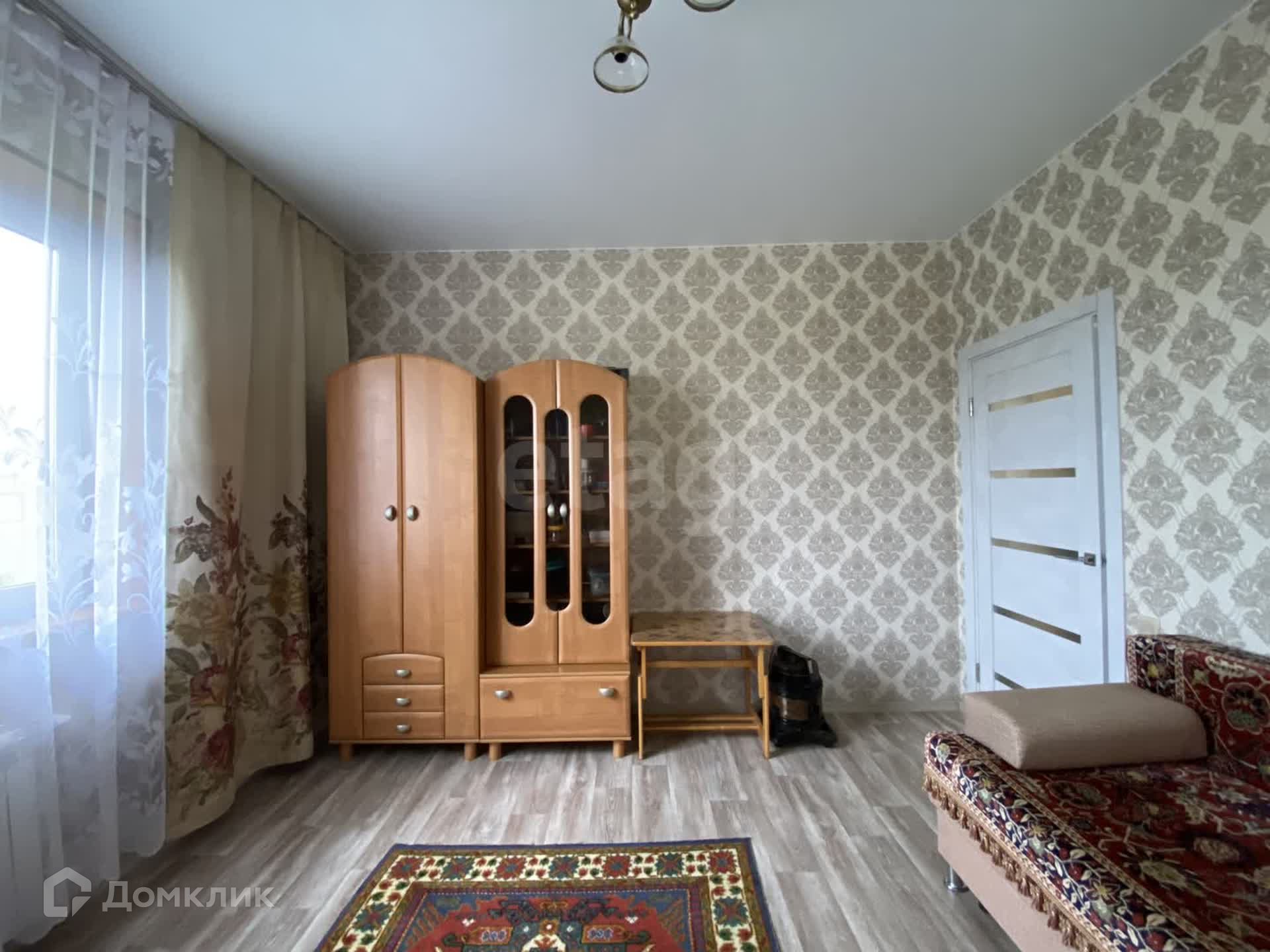 На полу линолиум высокого класса, на стенах обои, потолки натянуты, окна пластиковые. Чисто, светло, просторно, тепло.