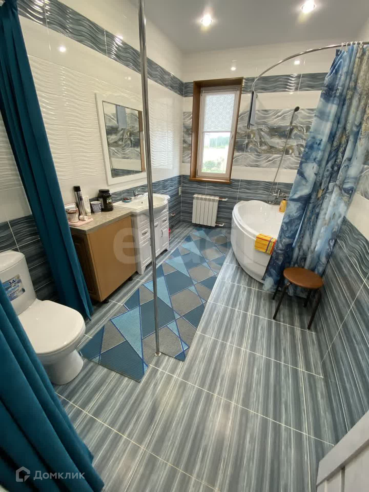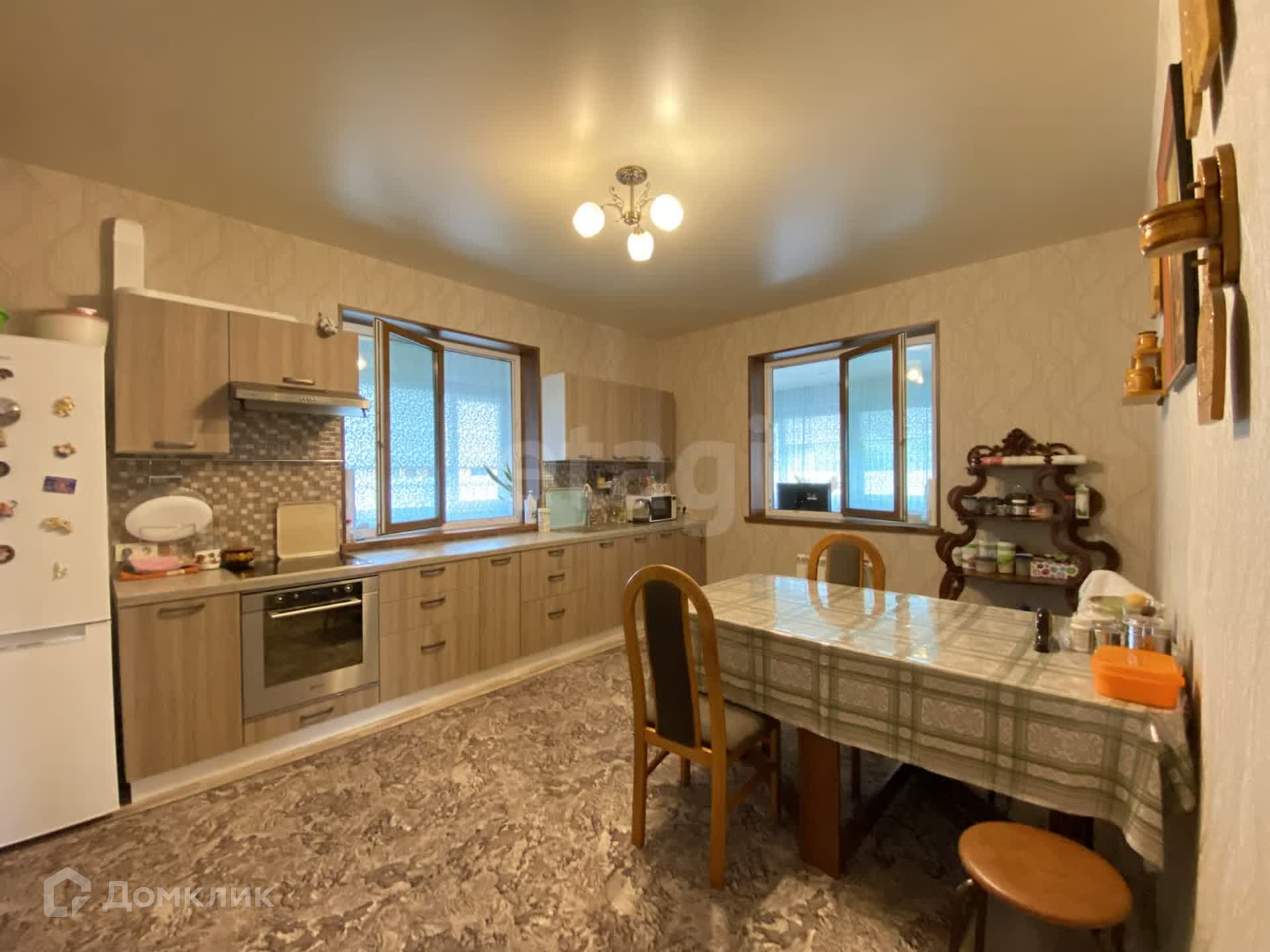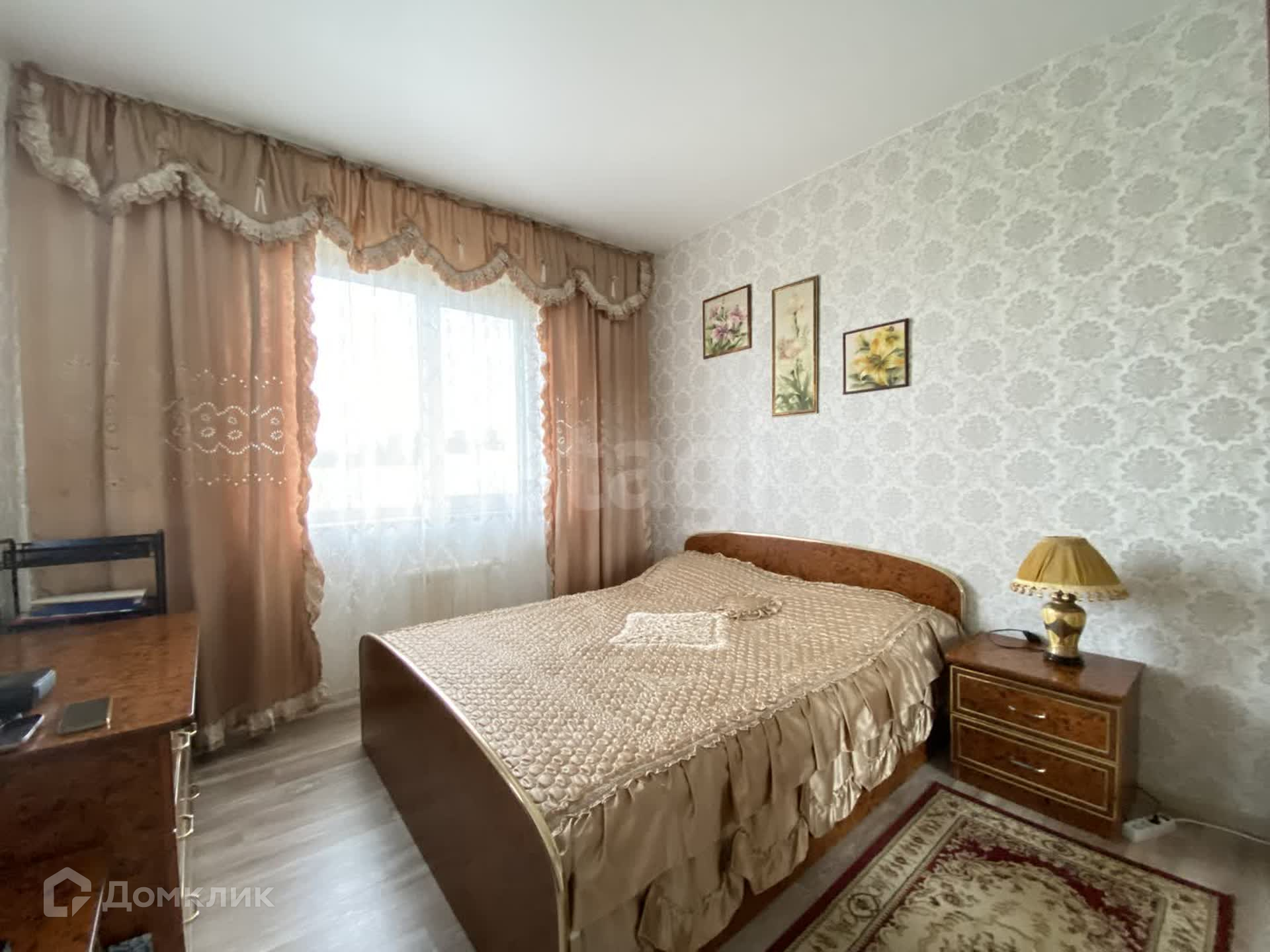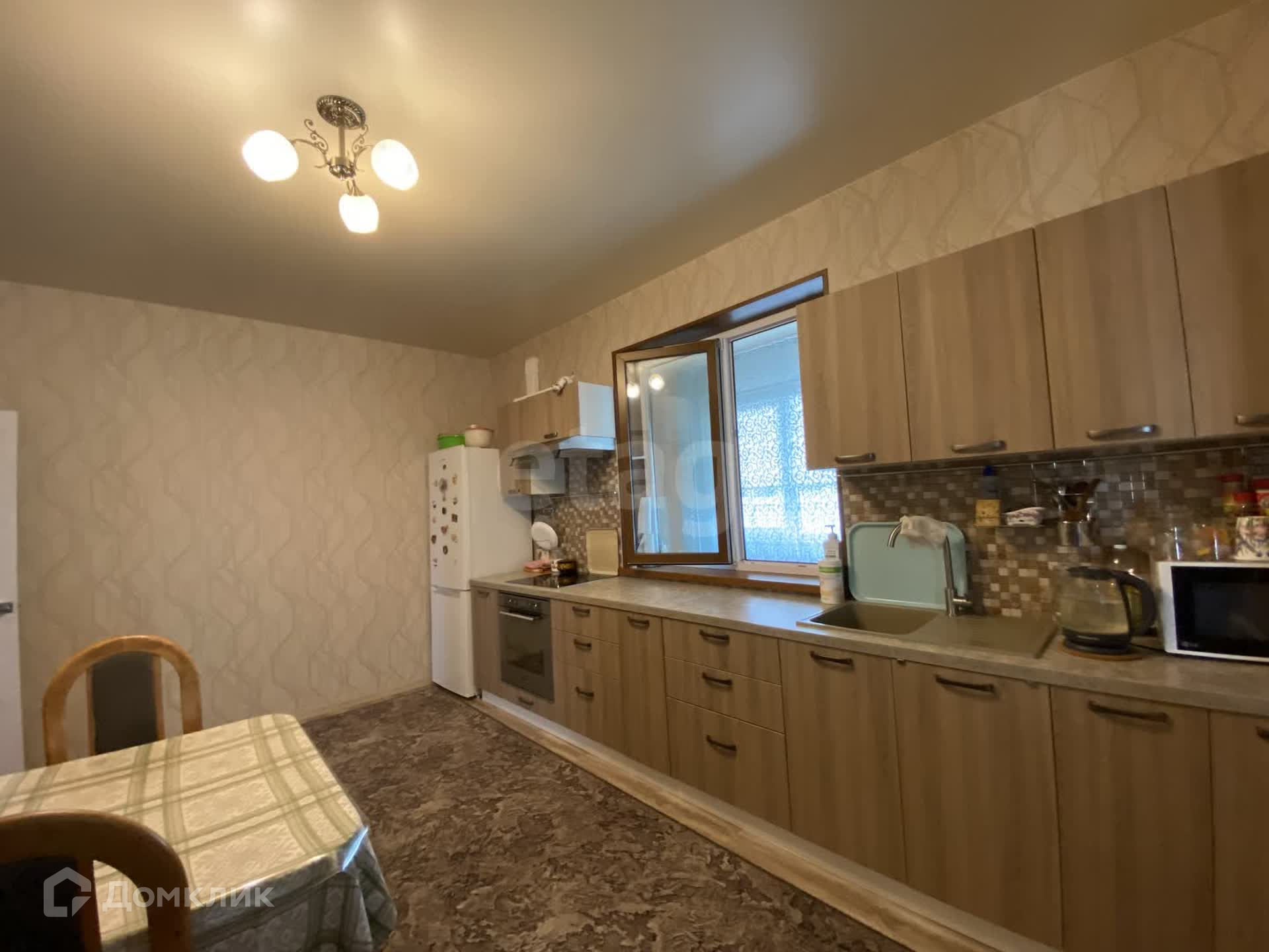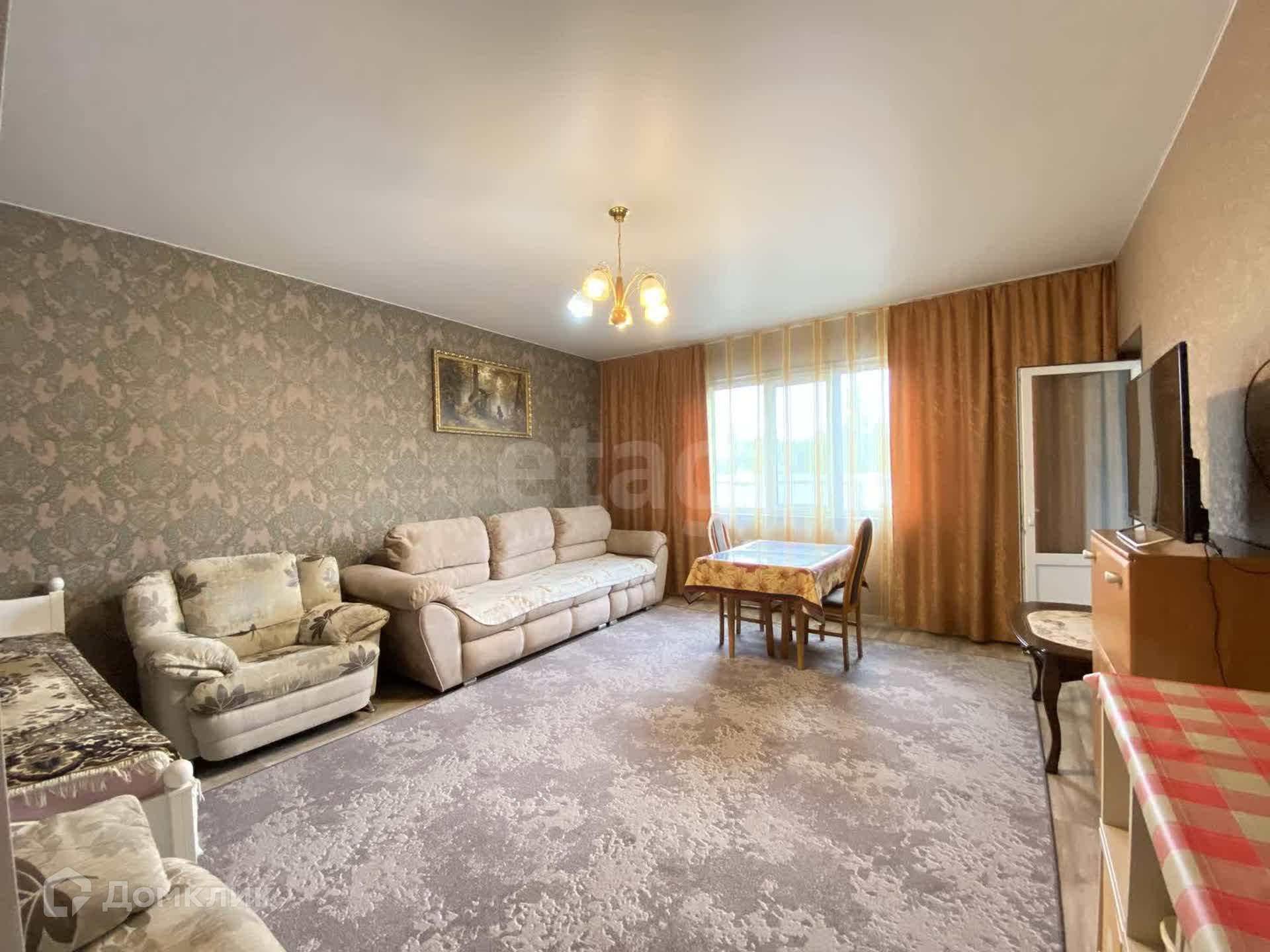 На полу линолиум высокого класса, на стенах обои, потолки натянуты, окна пластиковые. Чисто, светло, просторно, тепло.