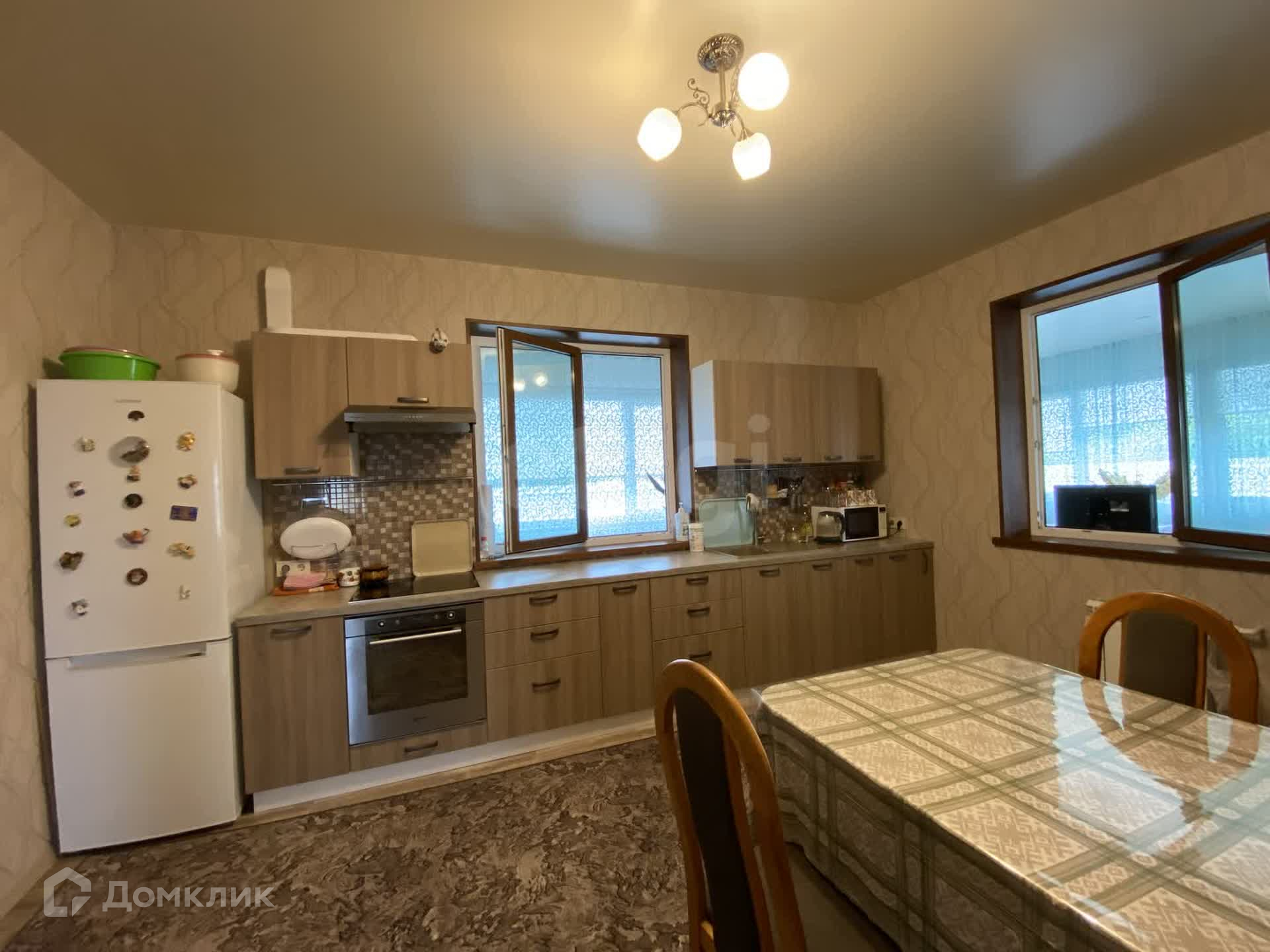 Три большие комнаты, кухня и теплая веранда.