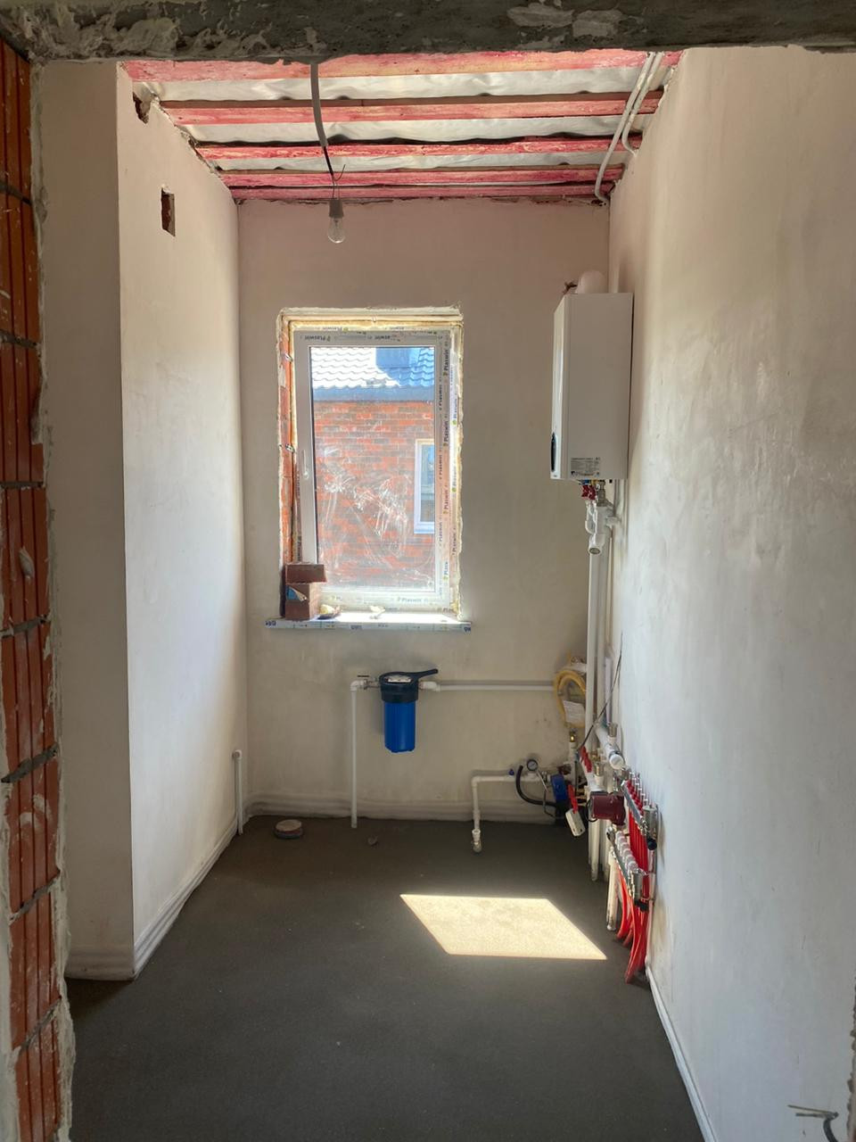 Внутри дом в качественной пред чистовой отделке, стены подготовлены механизированной гипсовой штукатуркой под обои, идеально выполнена стяжка пола. В дом заведены все коммуникации, подключена система теплых полов, газ, электричество, своя скважина, септик. В доме по планировке 29.4 кв.м кухня-гостиная, три спальни, просторная прихожая, где может легко быть встроен шкаф-купе, раздельный сан. узел, котельная.