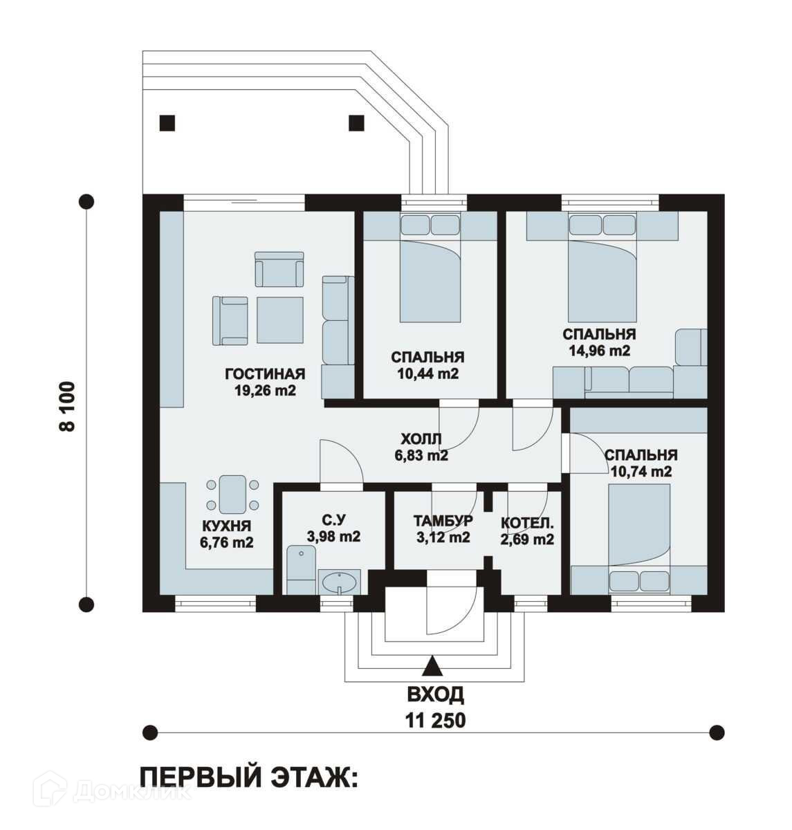 Общая площадь 96 м2
