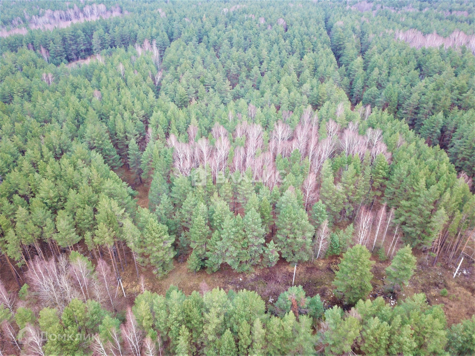 На участке сосны. Геометрия 25*40 метров. Ровный, без перепадов.