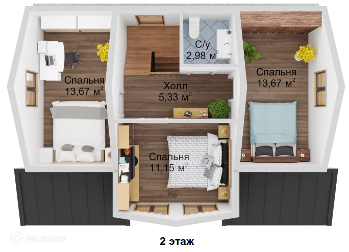 Кол-во спален: 3