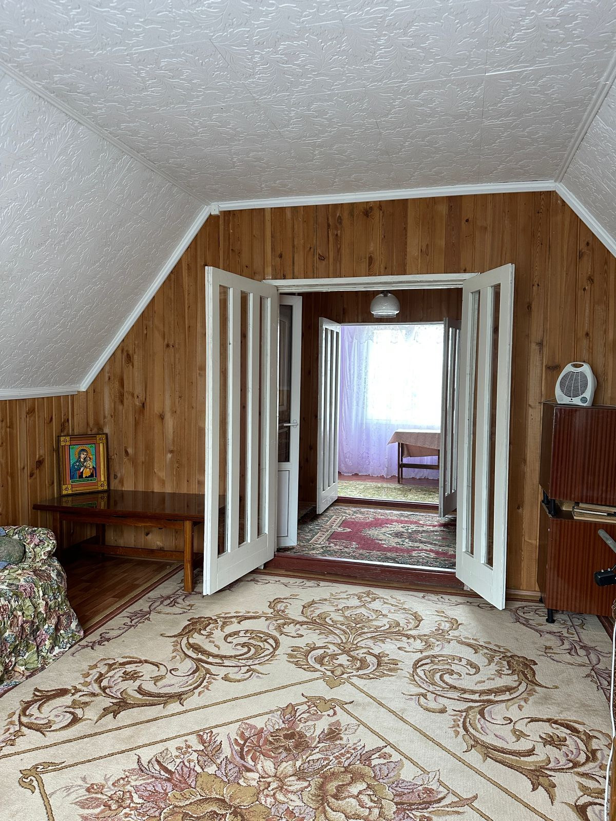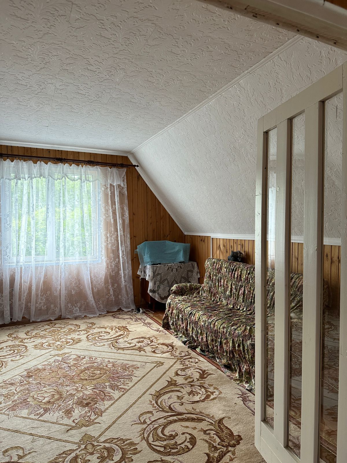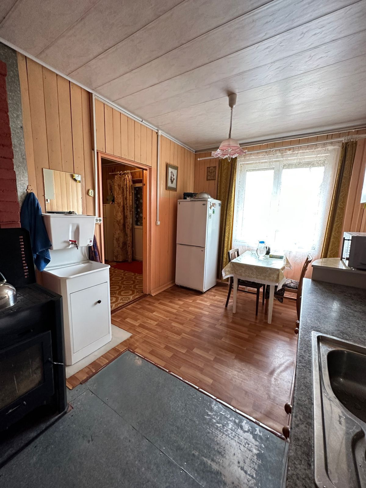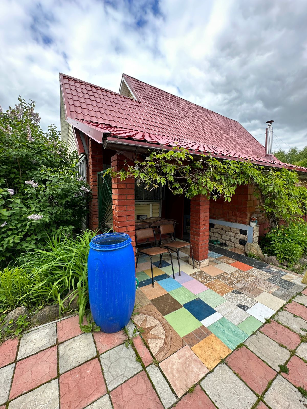 Дом щитовой , утеплен и обшит кирпичом , общая площадью 121 кв.м . Дом находится на берегу реки и граничит с парковой водоохраной зоной.