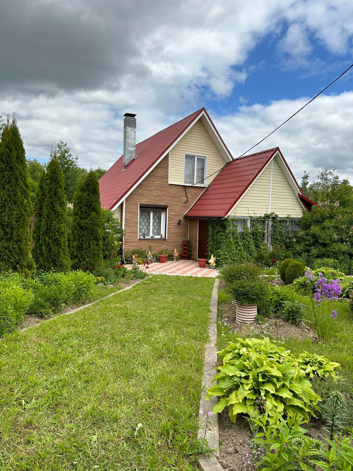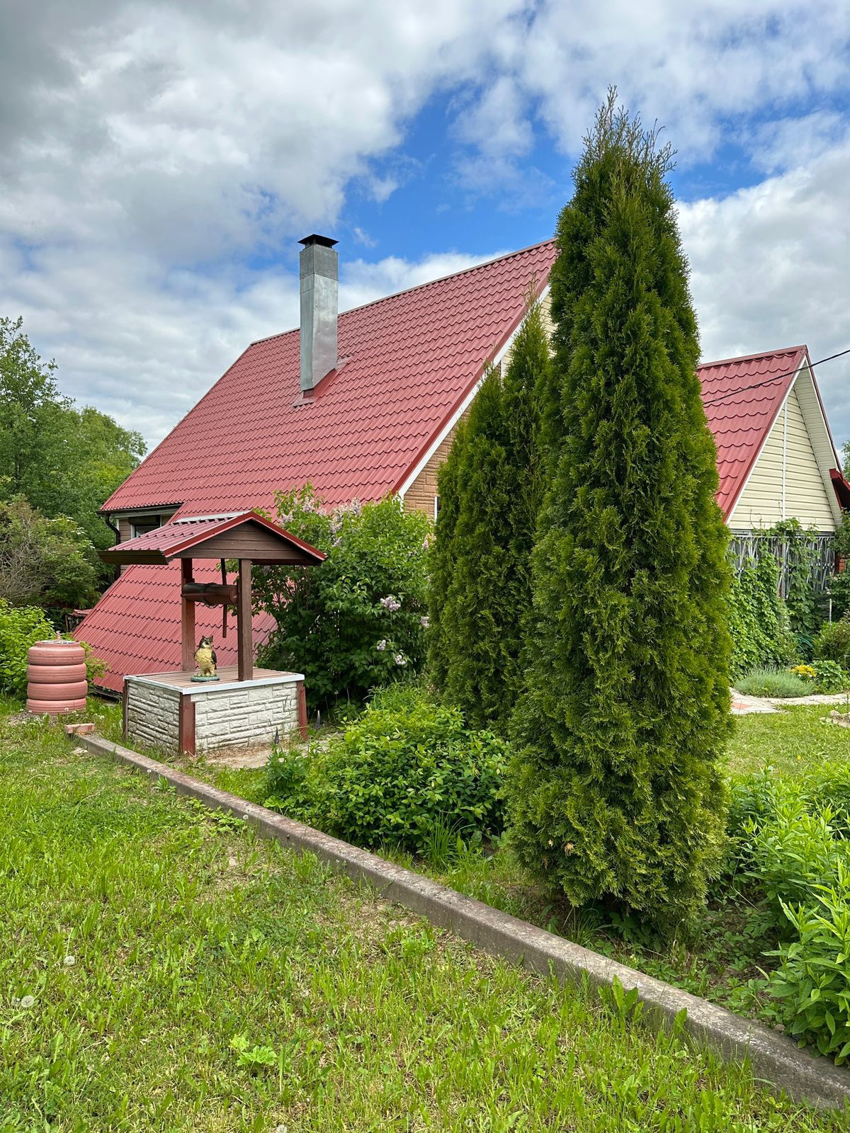 Фундамент - бетонная плита, крыша – металл черепица , фасад дома обшит сайдингом. В доме установлены 2-х камерные стеклопакеты , металлическая дверь, хороший подъезд к дому.