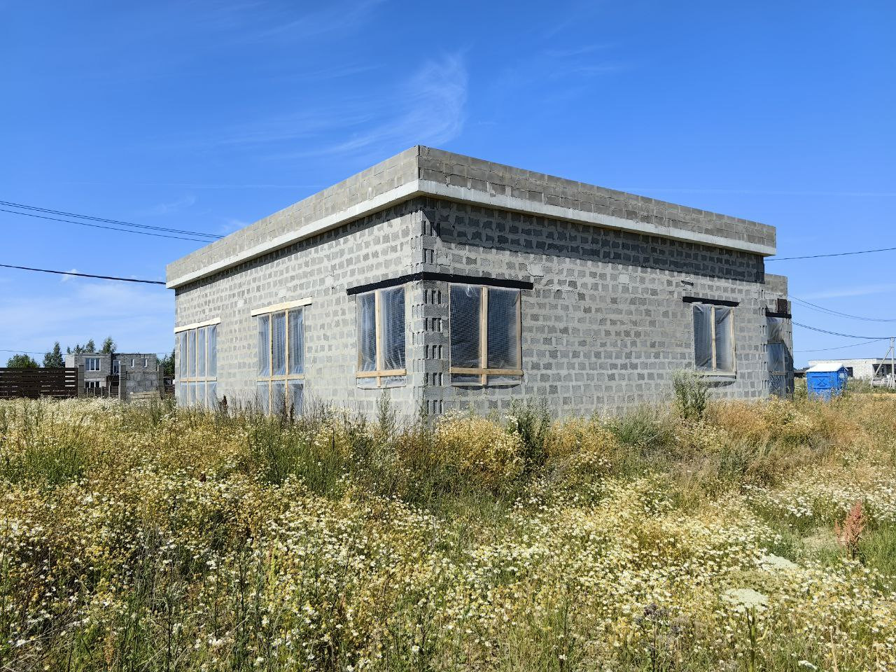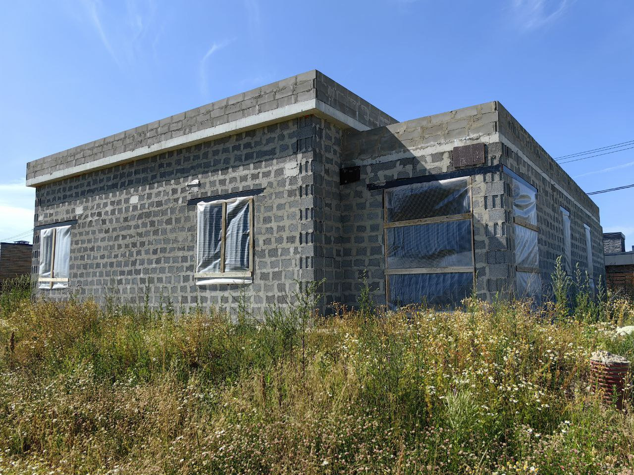 - преимущества: керамзитобетон, из которого выполнены стены, значительно превосходит по характеристикам распространенный газобетон. В нем без проблем можно закрепить тяжелые вещи. Согласно сертификату производителя он не требует внешней отделки для эксплуатации и его допускается не утеплять. Плоская кровля выглядит современно и позволяет ее эксплуатировать. Вы можете обустроить ее на свой вкус – как террасу или сад. В любом случае – это дополнительные бесплатные 182 м2 Вашей территории. Отсутствие межкомнатных перегородок позволит Вам выполнить финальную планировку по своему вкусу. Разводка канализации до каждой точки избавляет от проблемы прокладки труб по всему дому. Панорамные окна добавят света и солнца в нашем сером климате. Проемы окон спроектированы так, чтобы установить в них внутрипольные радиаторы. Участок готов к эксплуатации. Имеется исполнительная документации с разметкой залегания всех коммуникаций;