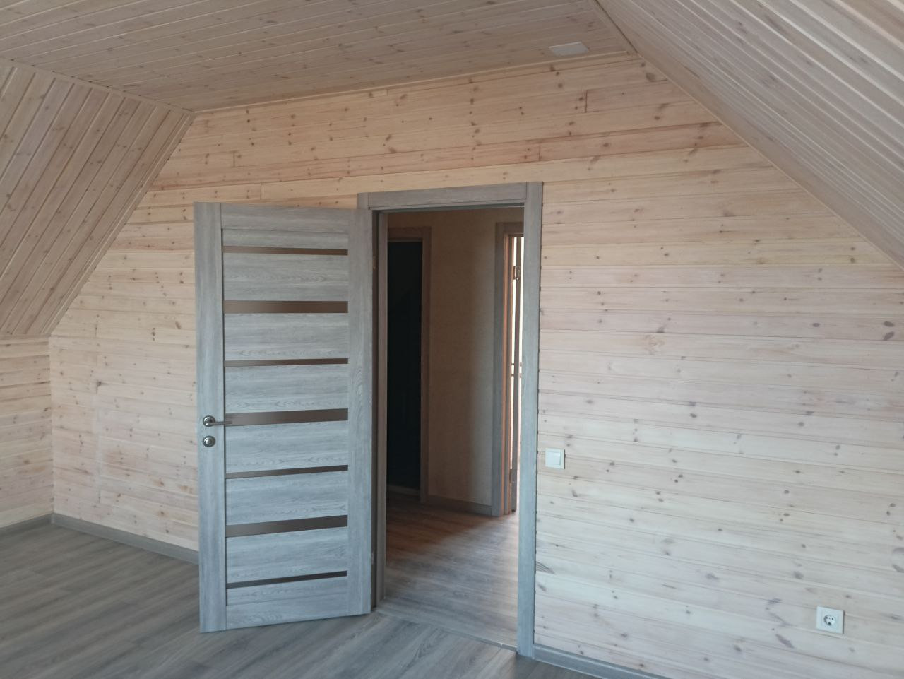 Планировка: два этажа, первый этаж: большая комната кухня-гостиная, уютная спальня, санузел, железная лестница, ведущая на второй этаж, где расположены две спальни (большая и маленькая), санузел, коридор, где можно расположить гардеробную или кладовую.