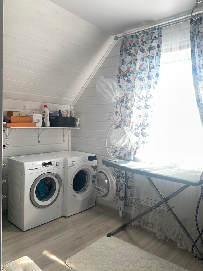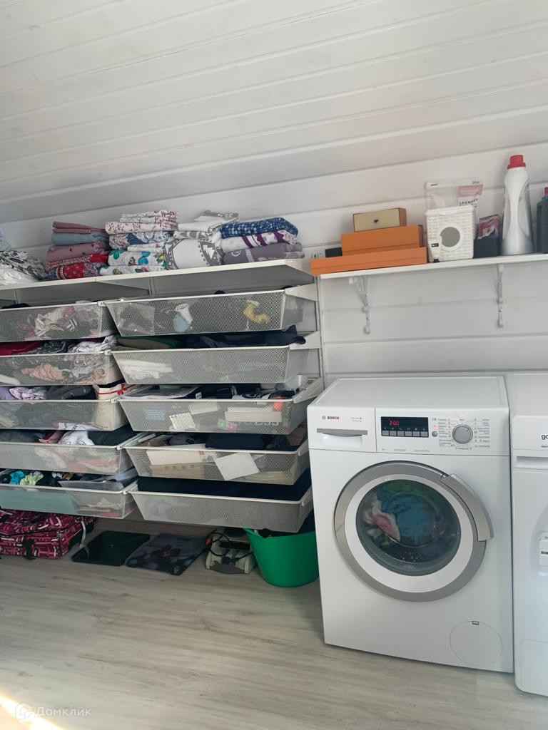 Для удобства хозяйки на втором этаже также разместилась постирочная и зона хранения для вещей, что позволило освободить комнаты от дополнительной мебели.