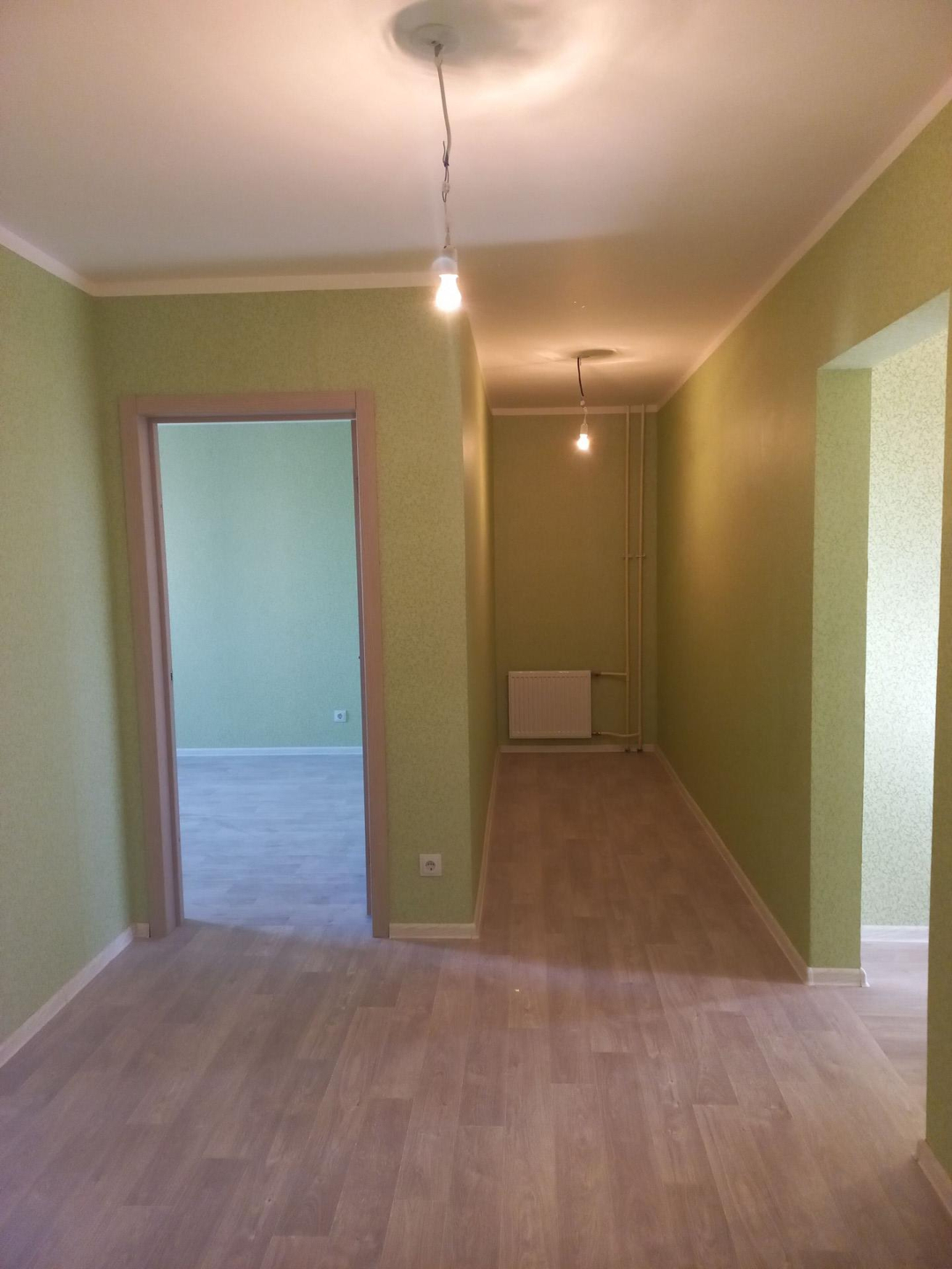 Квартира передаётся с полной чистовой отделкой: линолеум, обои, сантехника, межкомнатные двери, радиаторы. Всё как фото!