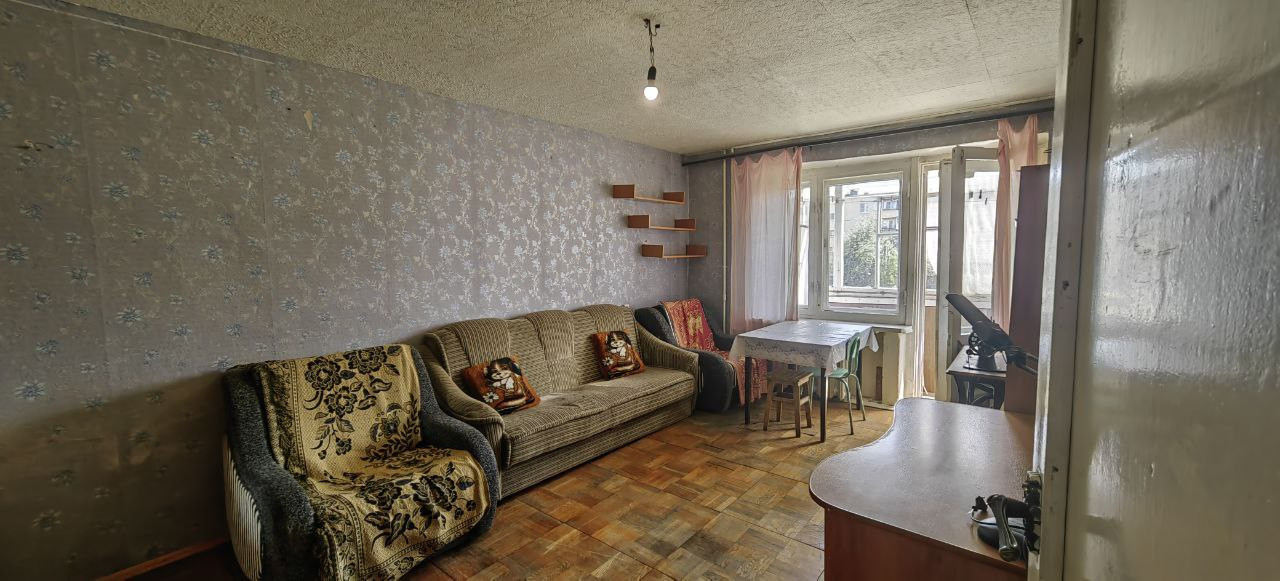 стенах обои, линолеум на кухне и в коридоре. Окна выходят во двор, под