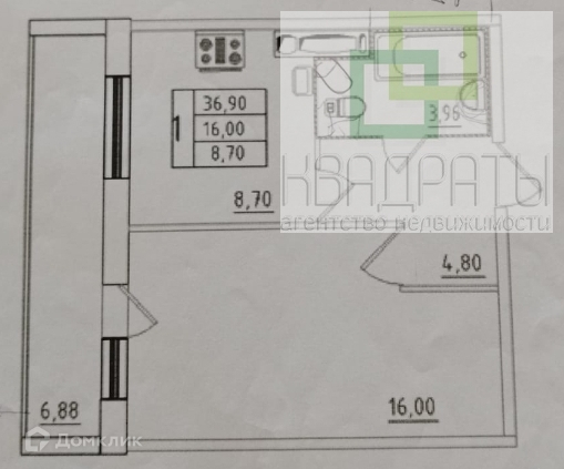 Общая площадь 33 м2