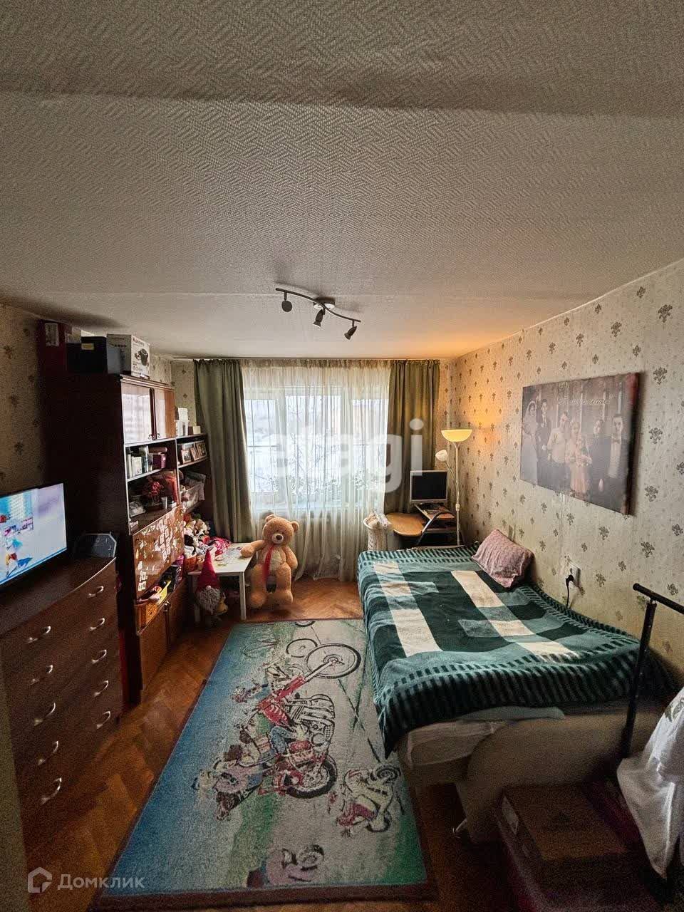 В одной комнате сделан ремонт полностью. Гипсокартон + утепление, натяжные потолки с подсветкой. Комната родителей и комната детей находится в разных сторонах.