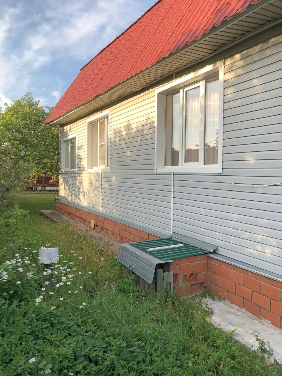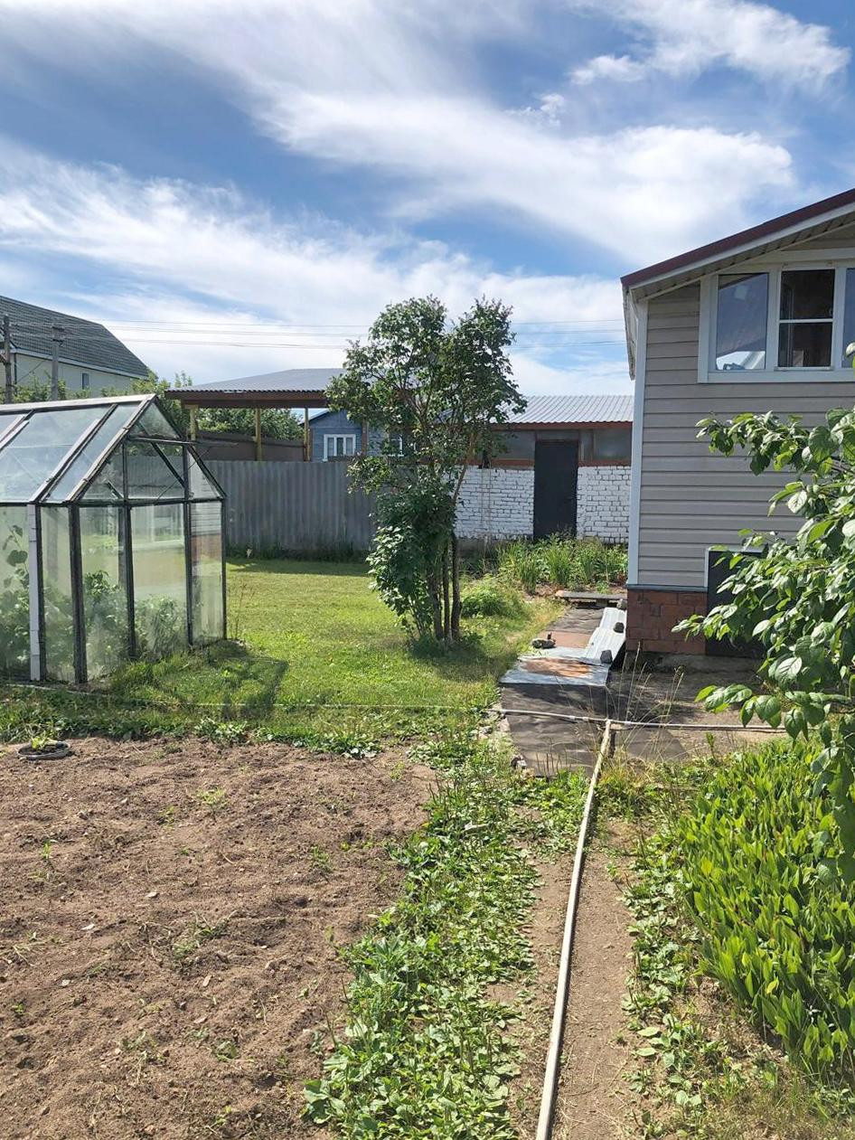 Продается жилой дом для круглогодичного проживания с земельным участком в д.Лайково-Попово. Бревенчатый одноэтажный дом 1997 года постройки, 70,2/43,2/10,4 кв.м., обшит сайдингом, окна ПВХ, есть возможность обустроить мансардное помещение. На первом этаже располагается просторная кухня, четыре комнаты и два санузла (в одном - ванна, в другом - душевая кабина). В дом проведена холодная вода, есть три бойлера (в санузлах и на кухне), отопление - центральное городское, канализация - септик. Дом продается с мебелью и бытовой техникой. На земельном участке 19 соток есть два хозяйственных навеса, два гаража (кирпичный и высокий) и новая двухэтажная баня (кругляк). Участок ухожен, засажен. До остановки общественного транспорта 5-7 минут пешком, до озера - 10 мин.