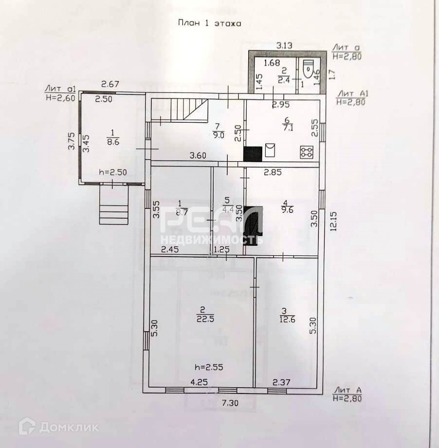 Жилая площадь 87.5 м2
