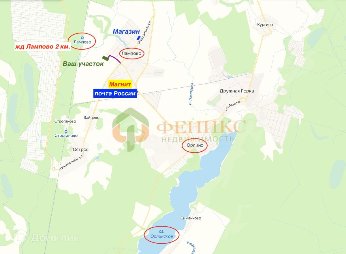 Обжитая деревня, пешая доступность от Магнит, Почта Росси и ж/д Лампово. Орлинское оз. 4 км.