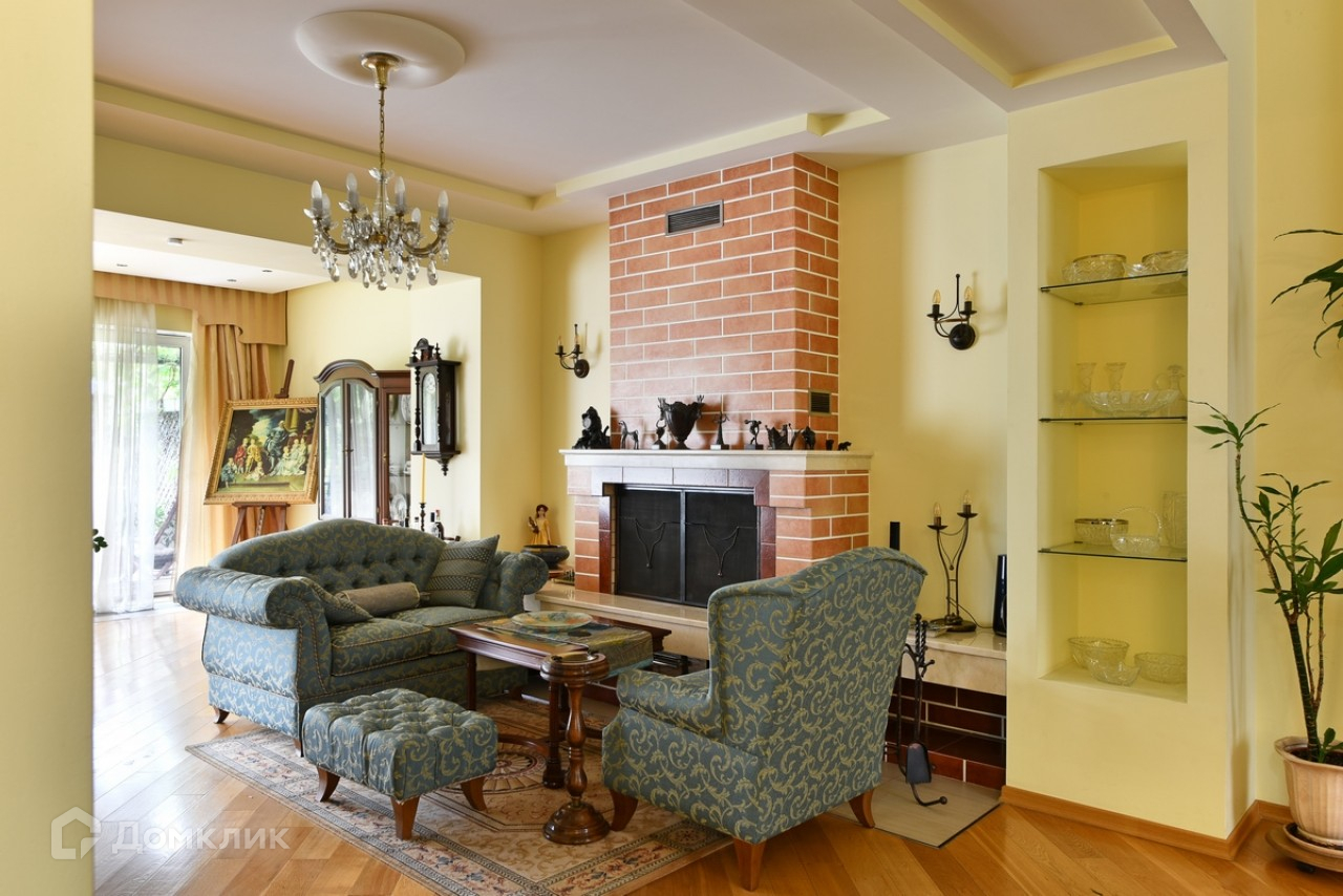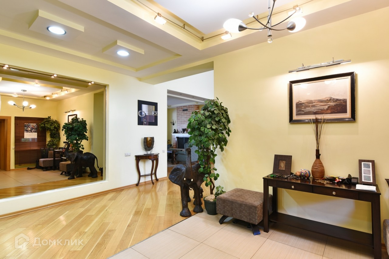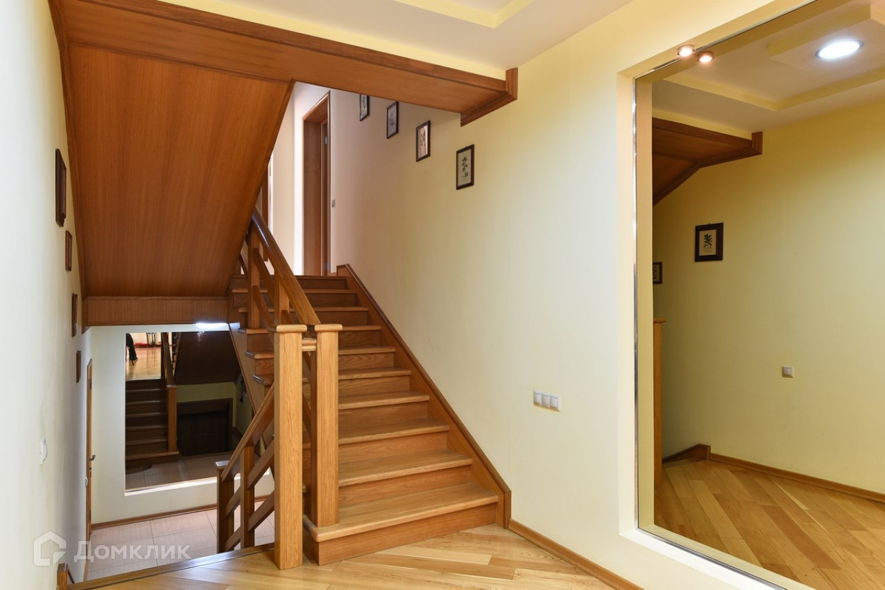Фактическая площадь дома – 540 м2, из них 390 м2 с полной отделкой, 150 м2 (цоколь и мансарда) без отделки. 1 этаж: гараж на 1 а/м, санузел, хозяйственная зона (котельная, прачечная) с выходом на участок, холл, гардеробная, гостиная со вторым светом (высота потолка 6 м2), каминный зал, кухня, столовая с выходом на веранду и участок.