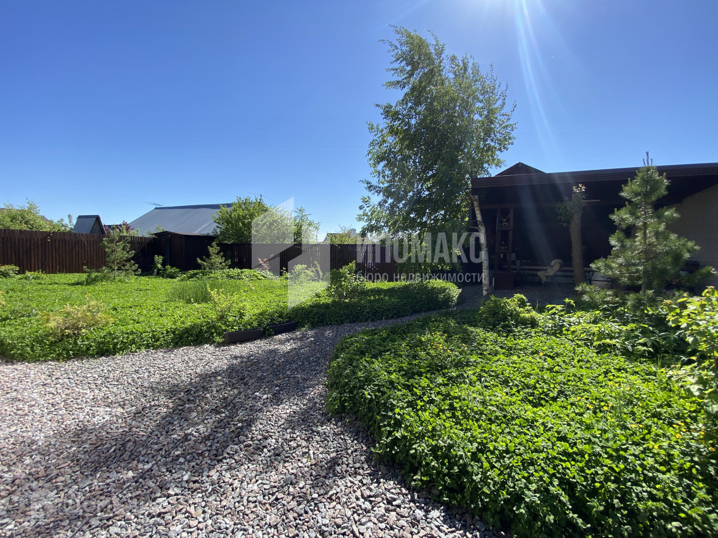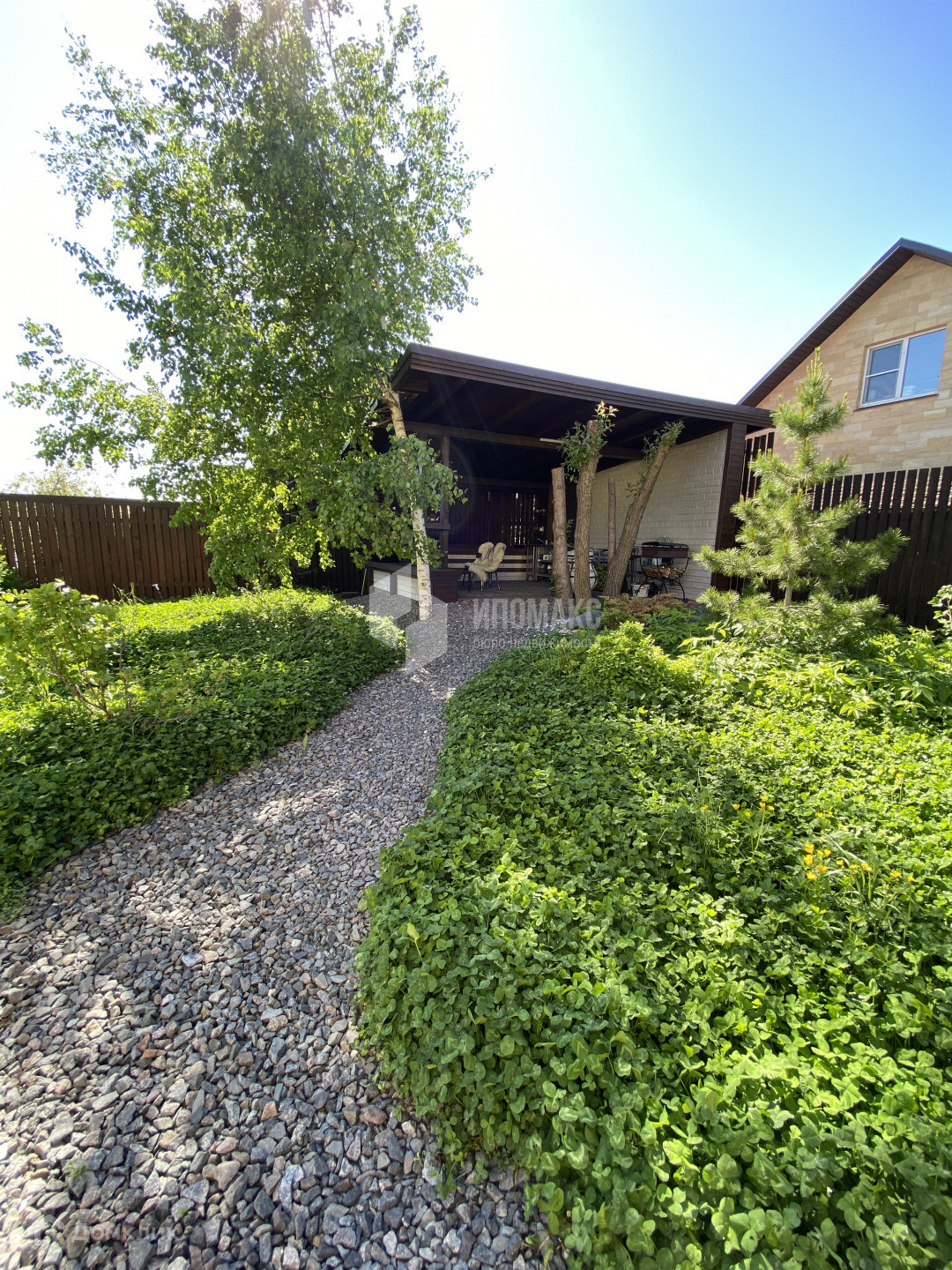 Ухоженный участок 8 соток, с ландшафтным дизайном, уютная зона барбекю. Крытая парковка на 4 автомобиля.