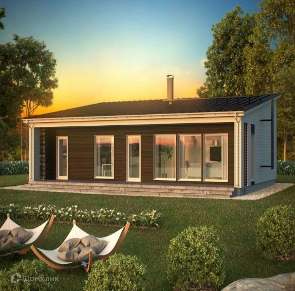 В доме предусмотрены: гардеробная, два санузла, три жилые комнаты, просторная и светлая кухня-гостиная с панорамным остеклением. Оборудовано помещение под сауну. К дому пристроена открытая веранда с выходом в сад, на солнечную сторону.