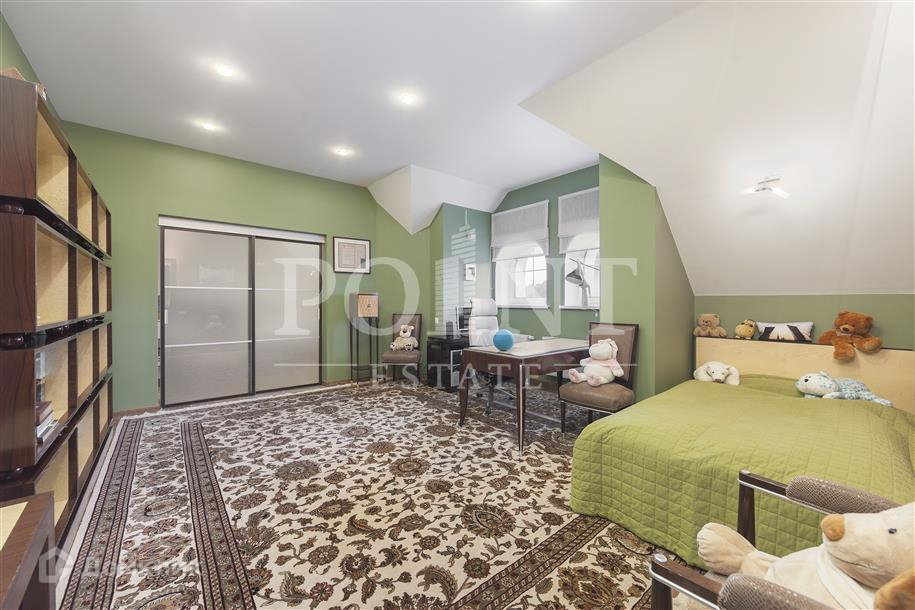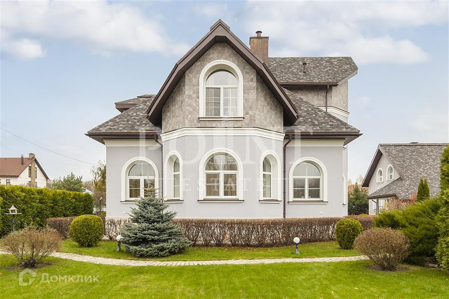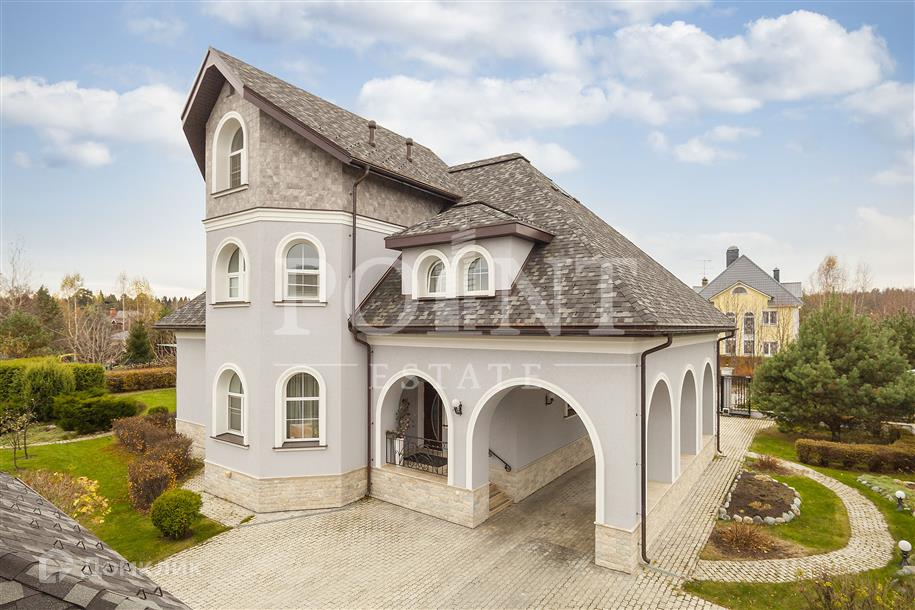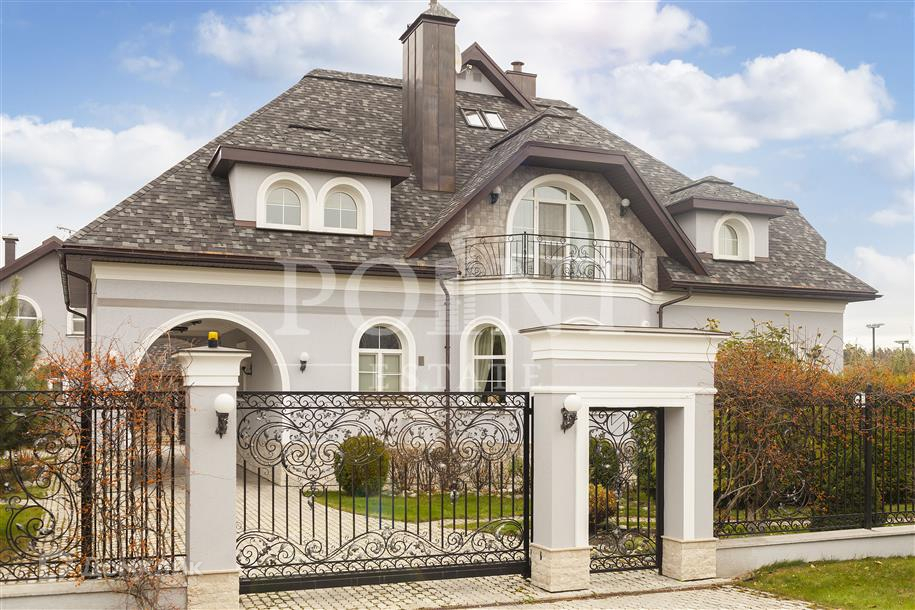 Лот: 32837.   Качественный кирпичный дом 460 кв.м., построенный по индивидуальному проекту на шикарном участке 20 соток с дорогими ландшафтными работами и уютным гостевым домиком с баней, в коттеджном поселке на Рублево-Успенском шоссе. На участке также расположились отдельностоящий гараж и великолепная ротонда. Неподалеку находится вся необходимая для комфортной жизни инфраструктура, а также роскошный лесной массив. Интерьер дома выполнен в светлой цветовой гамме, при этом использовались высококачественные отделочные материалы. Первый этаж вмещает элегантную гостиную с камином, функциональную кухню со столовой зоной, гардеробную, кабинет, котельную и санузел. Второй этаж представляет собой полноценную спальную зону.