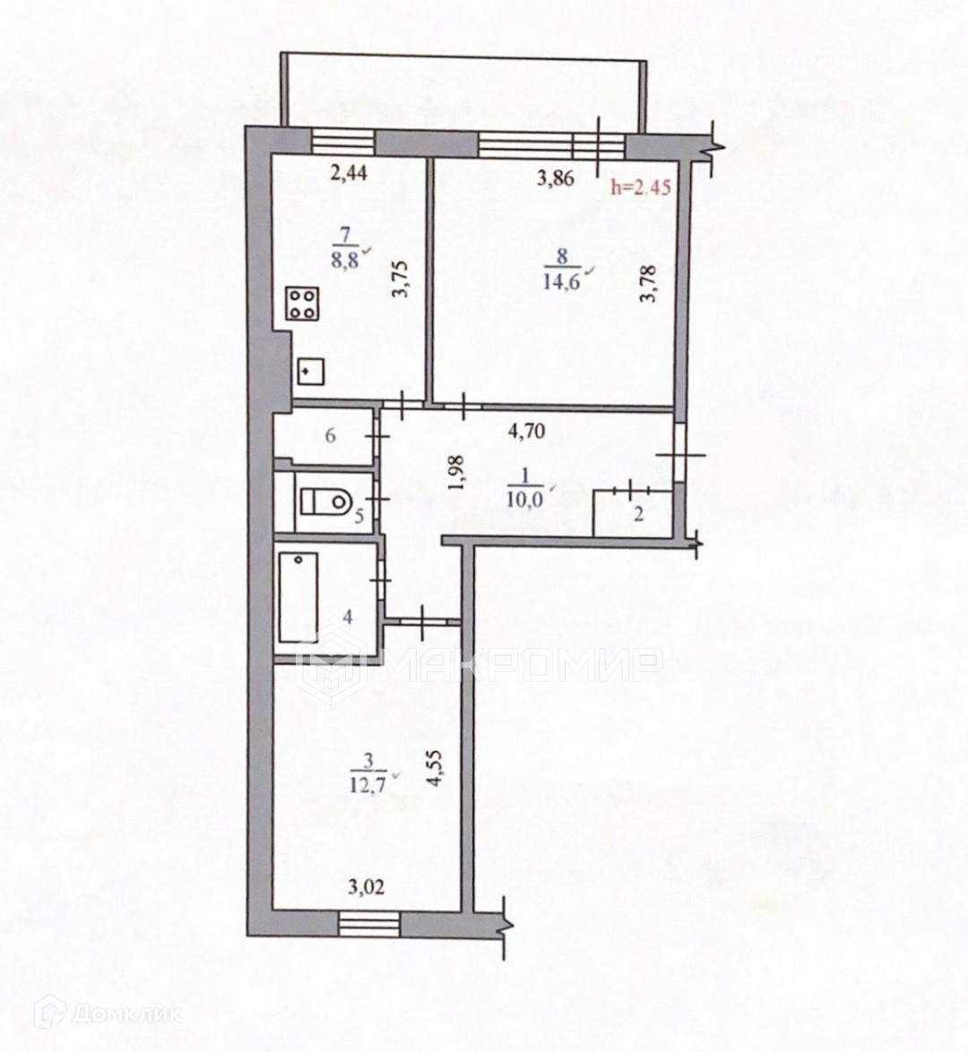 Балкон, лоджия 1 балкон