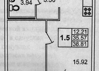 Однокомнатная квартира на продажу, 38.5 м2, деревня Лаврики, 40Е
