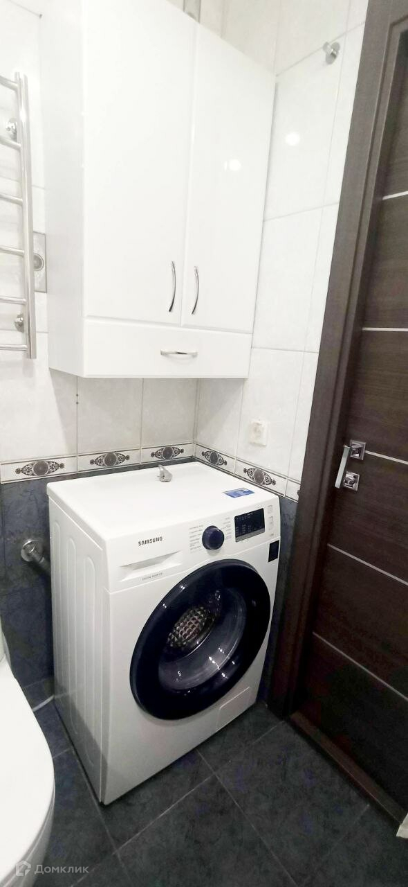 Балкон застеклен и утеплен, встроенный шкаф. Ванная: стиральная машина, раковина с встроенной тумбой, 2 подвесных МДФ-шкафа.