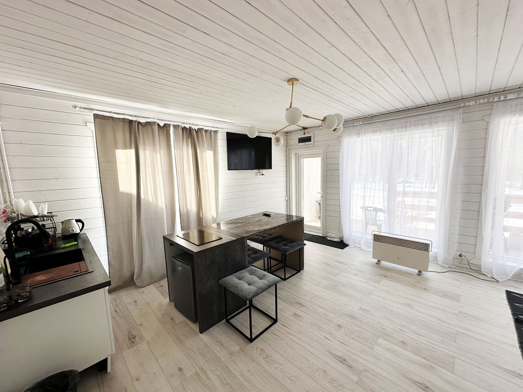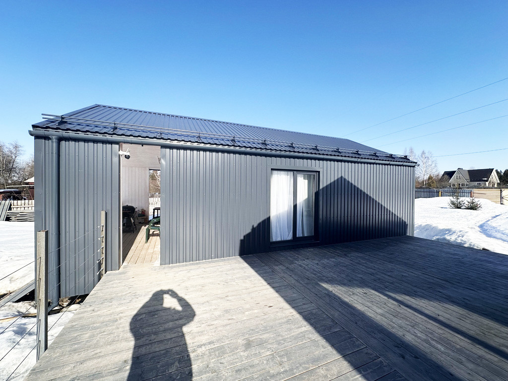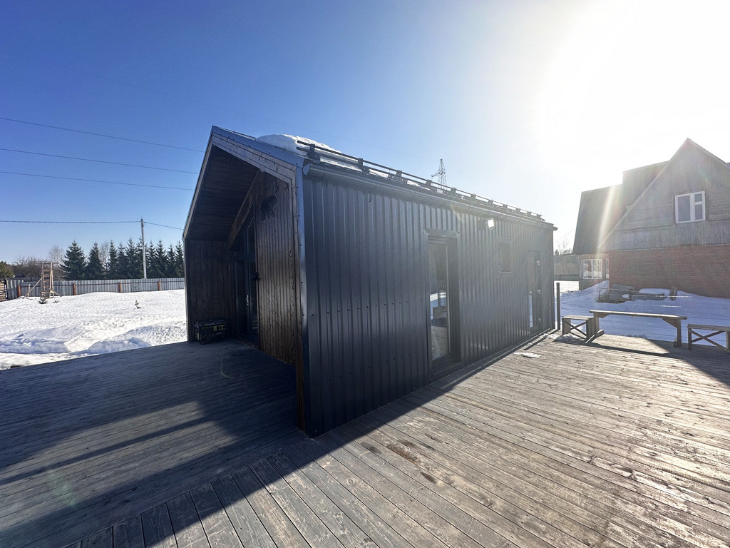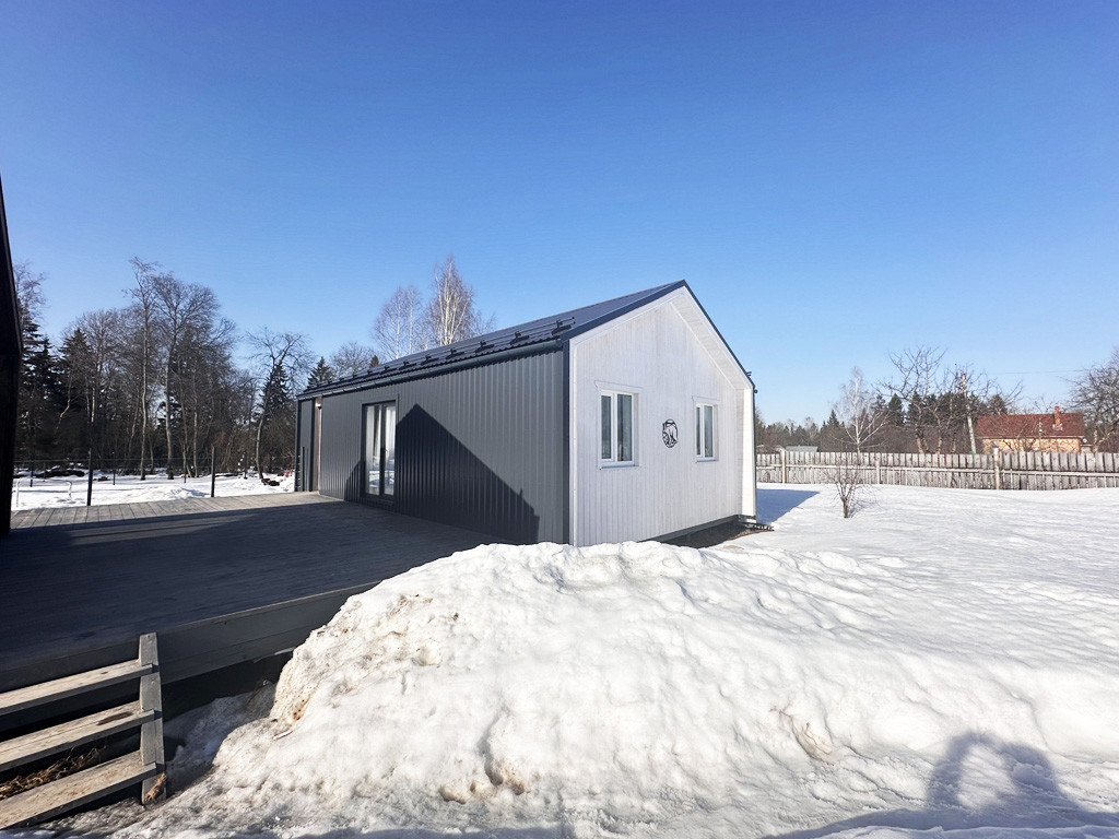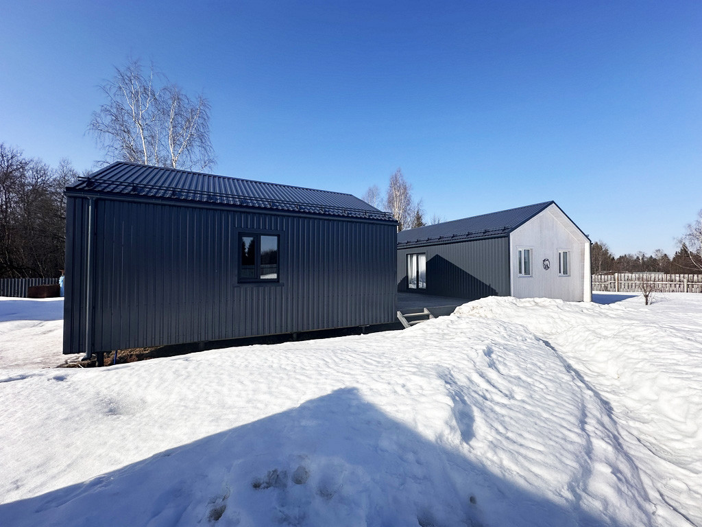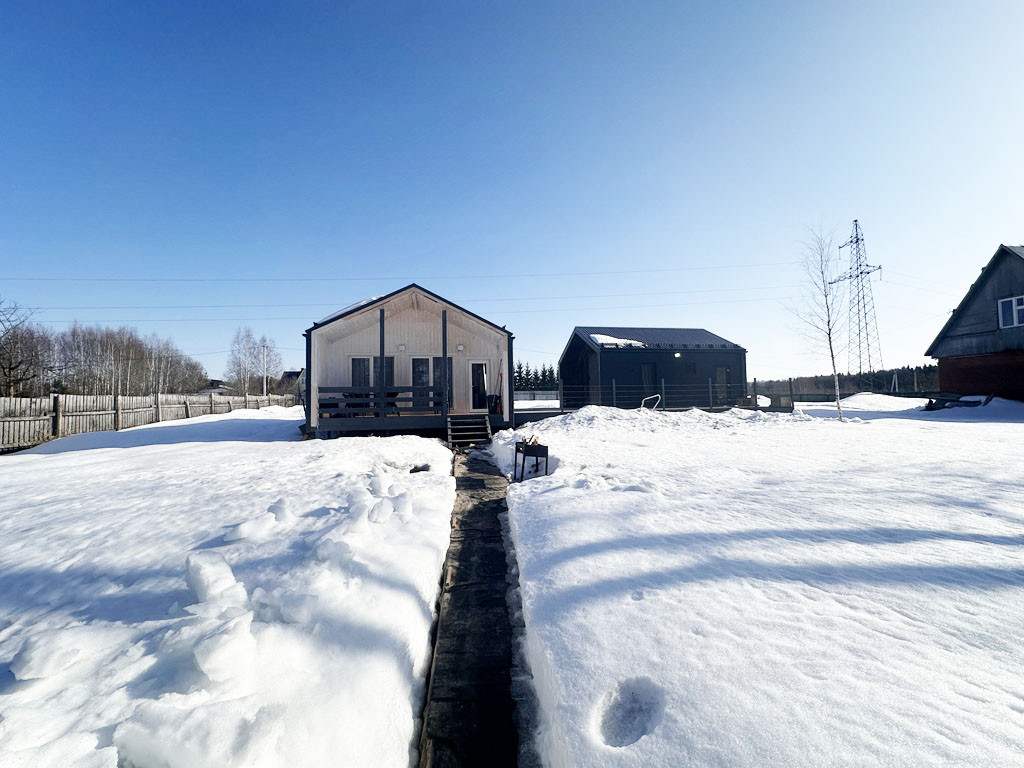 Построены 2023 году.  Площадь каждого дома по 98,9 кв.м и 54,9 кв.м. Оба дома построены из высококачественных материалов по каркасной технологи для круглогодичного проживания. Фундамент свайно-винтовой. Утепление полов: ветра-влагозащита «Ондутис SA 130», миниральная вата рулонного типа «Кнауф 200мм», стены: «Роквул Лайт Батс Скандик 200 мм». Окна ПВХ марки «Rehau». Утепленная входная дверь. На крыше установлены снегодержатели.