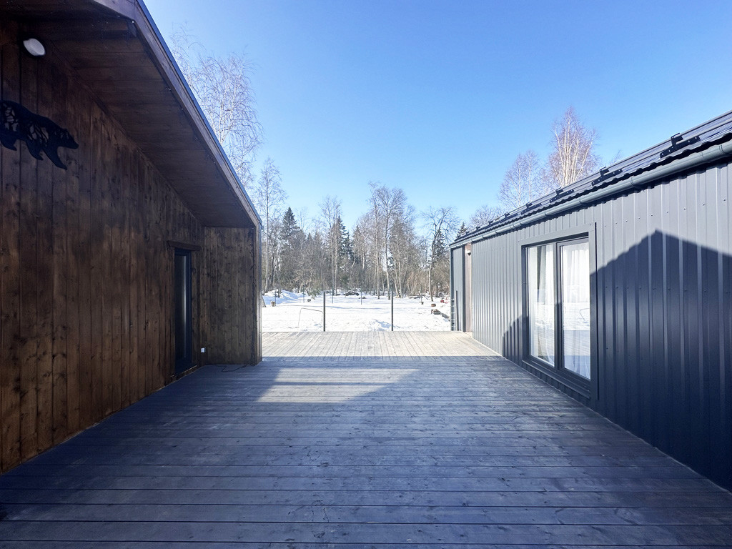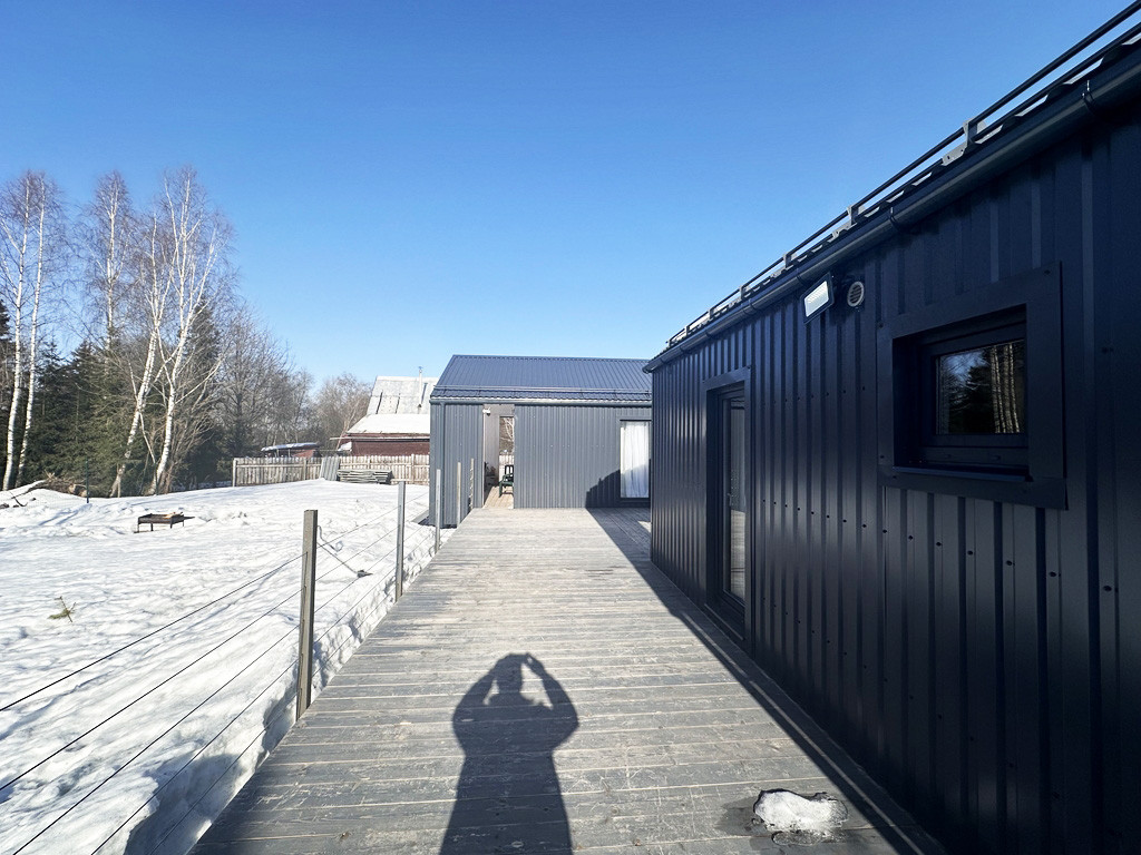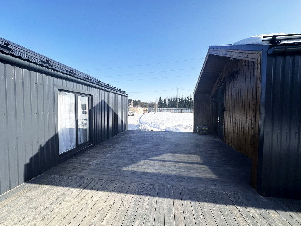 Продается два дома в стиле «Барн объединённых большой общей террасой» на земельном участке 15 соток. По Адресу: Волоколамский г.о., д.Лазарево, пр.Рузский (в 125 км от МКАД по Ново-Рижскому шоссе).