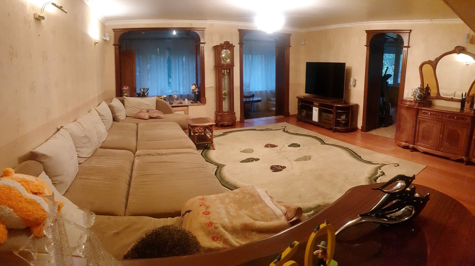 Двухуровневая 5 комнатная квартира к вашему распоряжению. Общая площадь 232 кв.м., огромная гостиная 42 кв.м., хозяйская спальня 32 кв.м. с личным сан/узлом и джакузи, спальня 29,5 кв.м., и дв небольшие комнаты 13,4 и 10,3 кв.м., кухня - 12 кв.м., зона круглого стола - 17 кв.м., лоджия, второй сан/узел, терраса с отдельным выходом на улицу. На нижнем уровне вас ждет сауна с бассейном и комнатой отдыха!!!