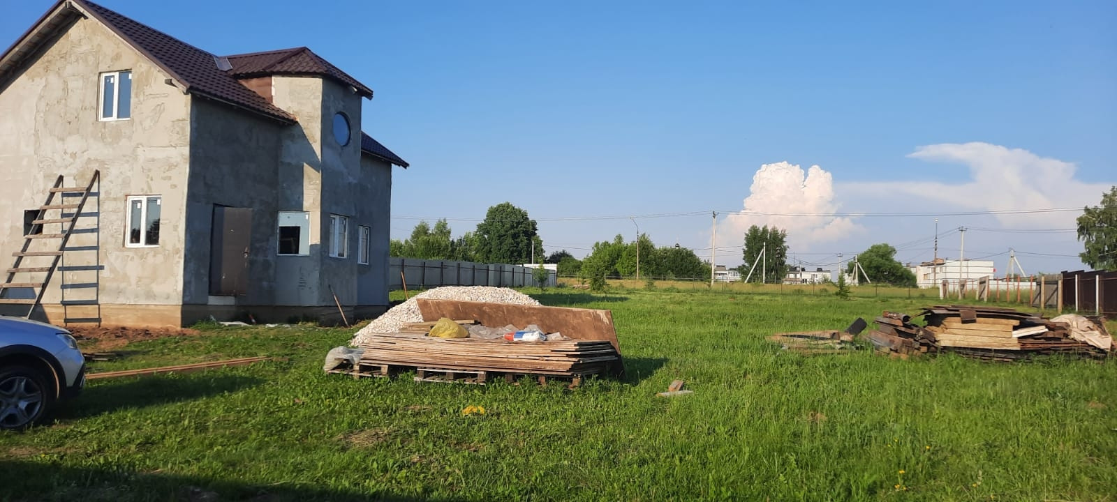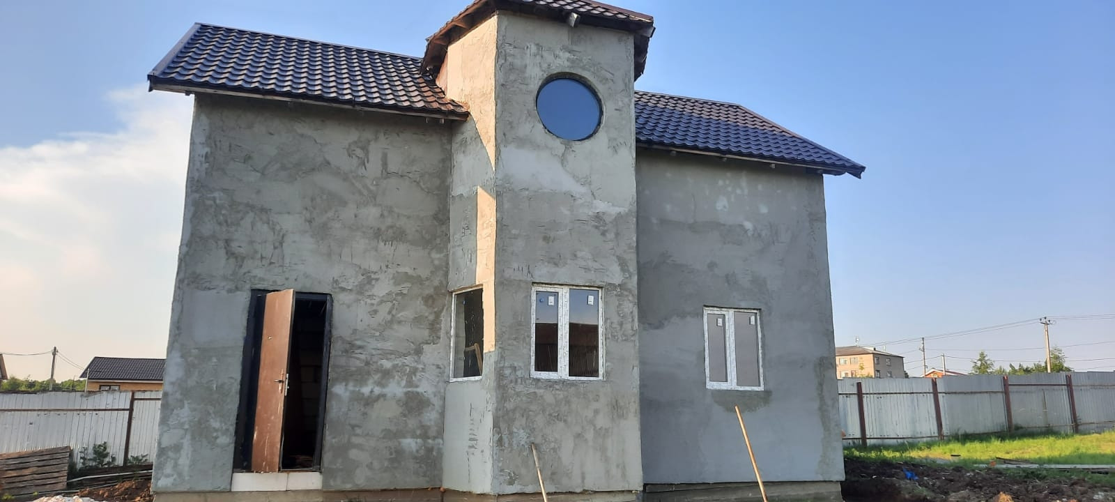 Дом на этапе стройки, утеплён и оштукатурен снаружи. Крыша утеплена, металлочерепица, окна ПВХ.