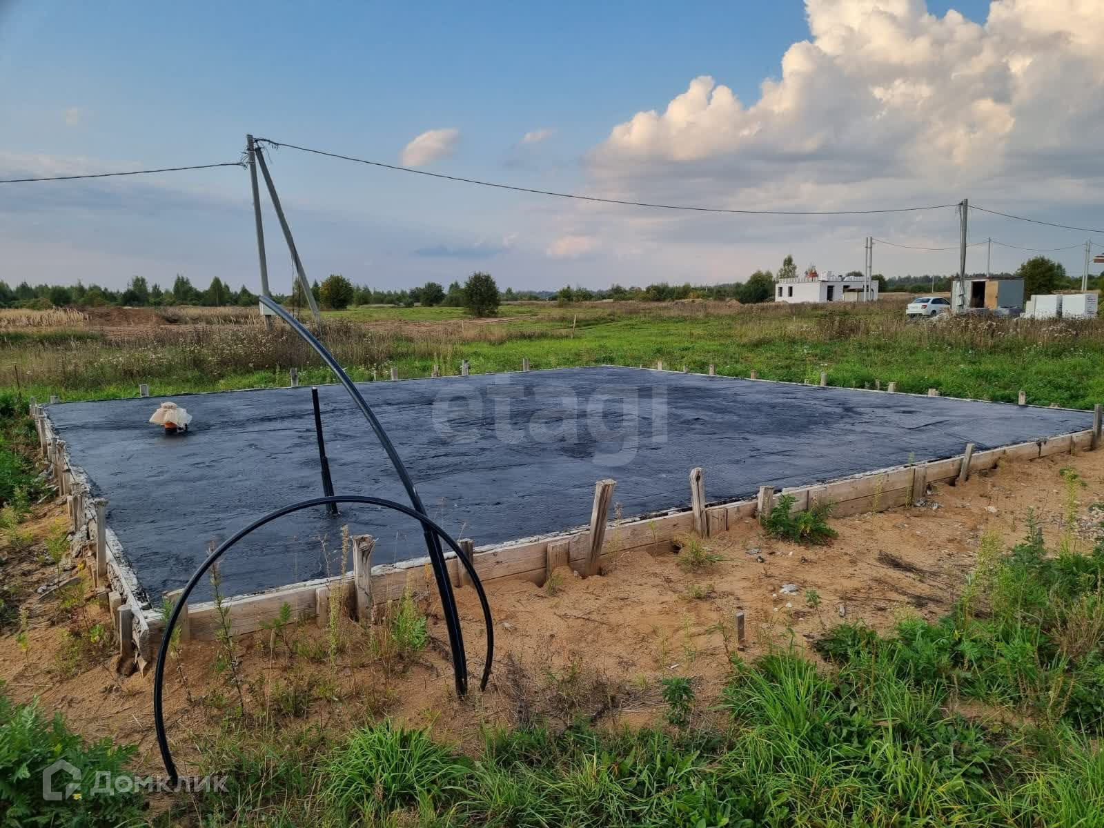 Фундамент оснащен теплоизоляционными элементами и скрытыми инженерными коммуникациями, что значительно упростит процесс строительства. Участок имеет утрамбованный грунт с прослойкой из песка и щебня, а также гидроизоляционную прослойку и арматурную сетку из стали АIII 12 мм, что обеспечивает надежность и безопасность.
