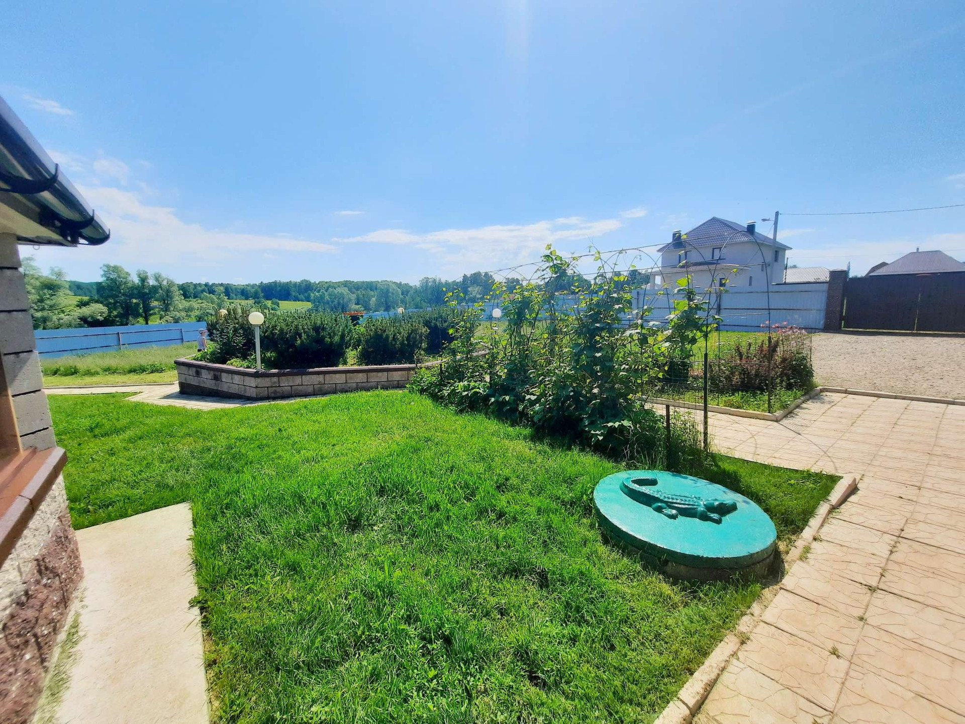 Участок земли 30 соток, по периметру огорожен забором. На участке расположен дом площадью 403 м², банный комплекс, огромная беседка с печью и зоной барбекю возле собственного пруда. На территории, так же имеется своя скважина, колодец, детская площадка, огород, плодово-ягодные насаждения.