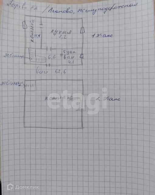 Общая площадь 52.5 м2