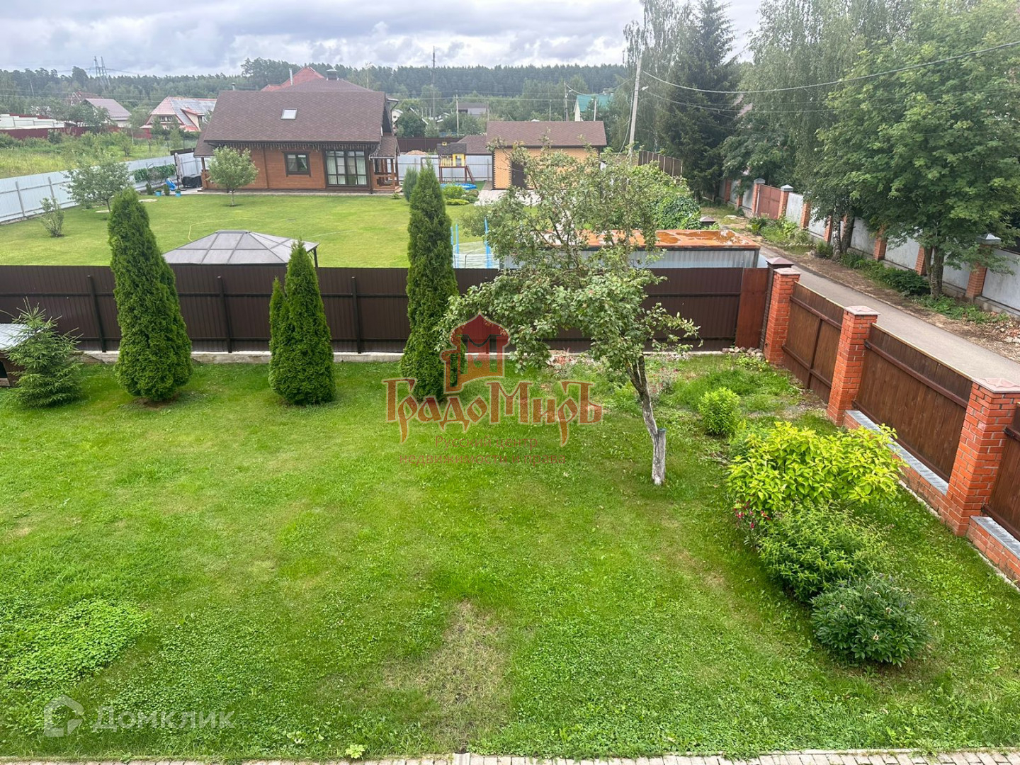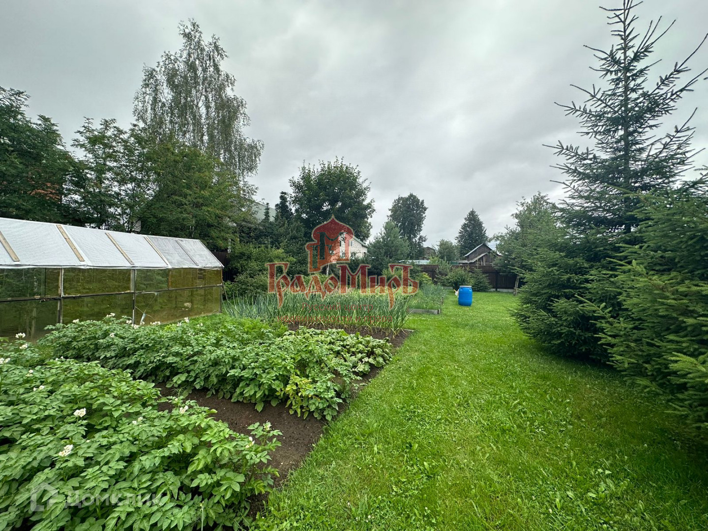 Участок ровный, сухой, огорожен, облагорожен. Растут плодовые и декоративные деревья и кустарники. Небольшая деревянная хозяйственная постройка 6×6 для садовых и технических нужд, крытая стоянка для авто, теплица.