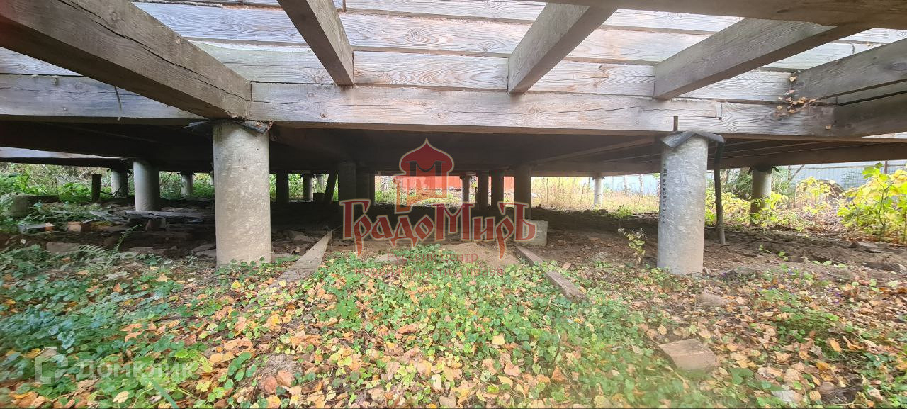Возведен из бруса 200*200 см на бетонных сваях.