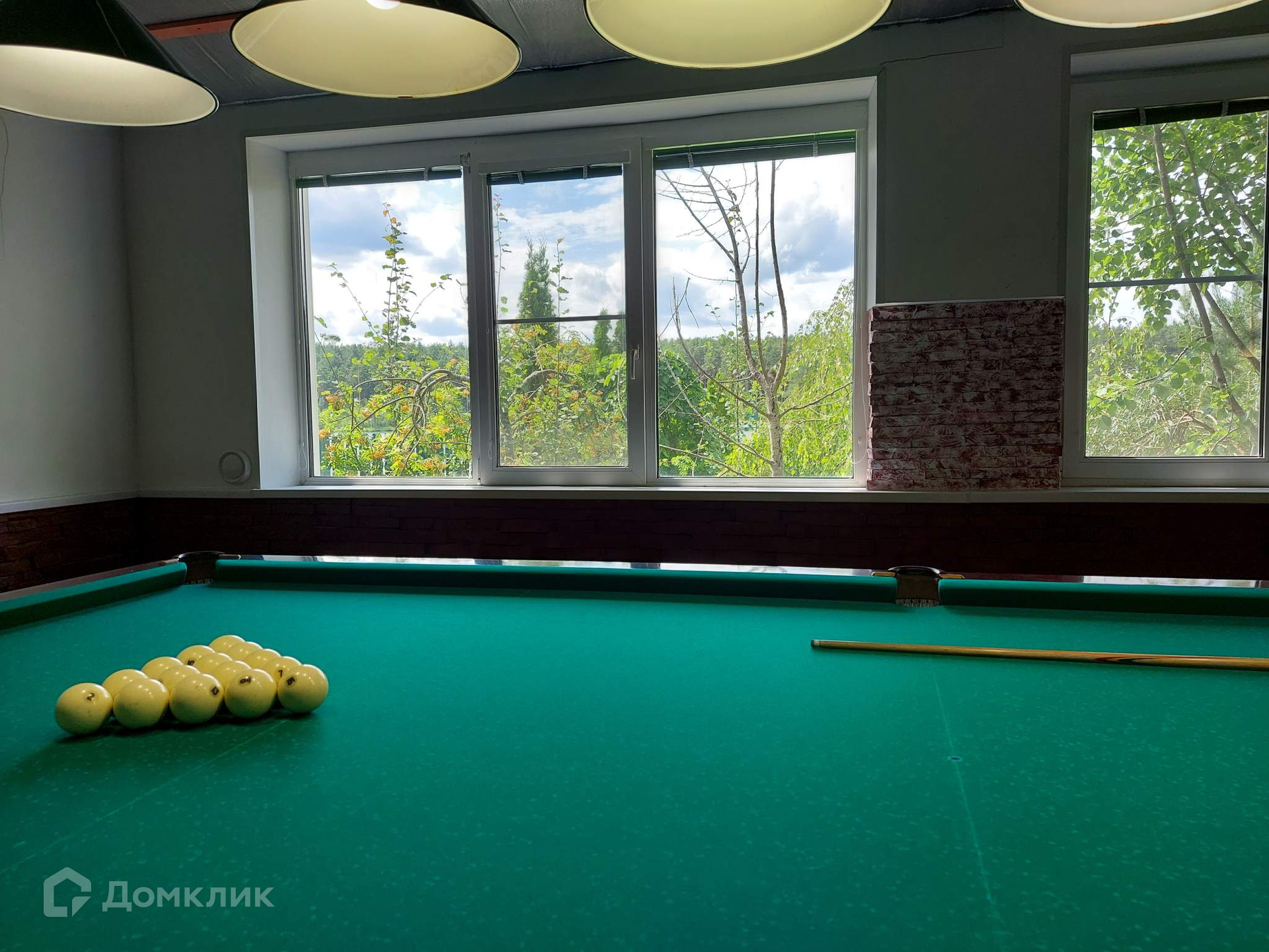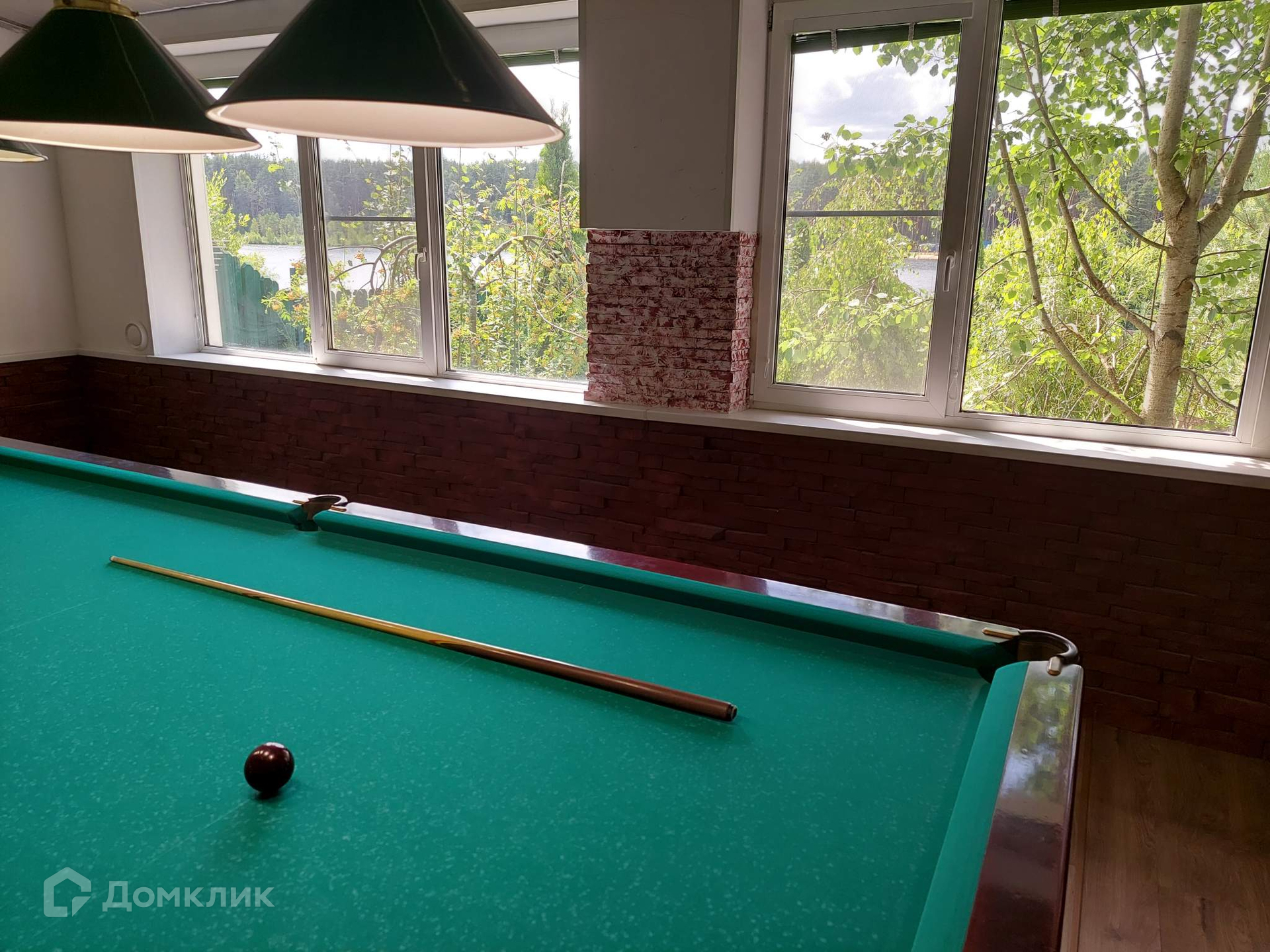 - дом бильярдная площадью 55 м2, одноэтажный с панорамными окнами и видом на озеро,