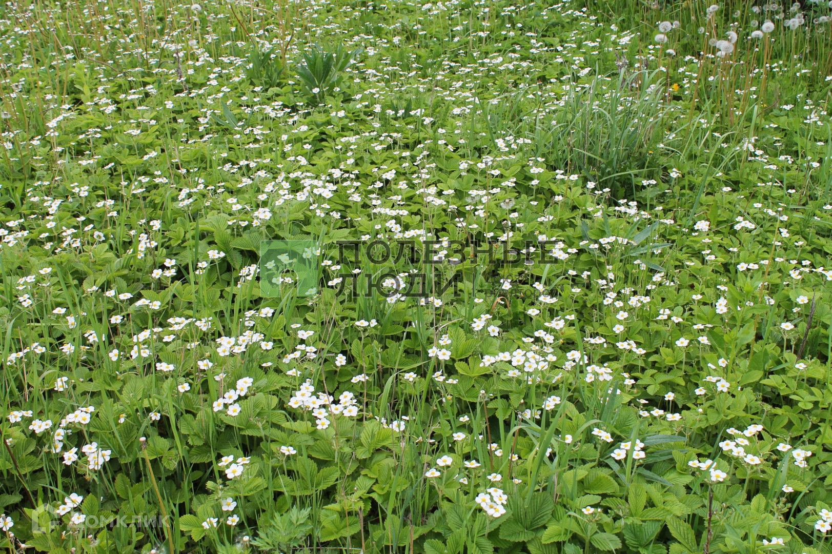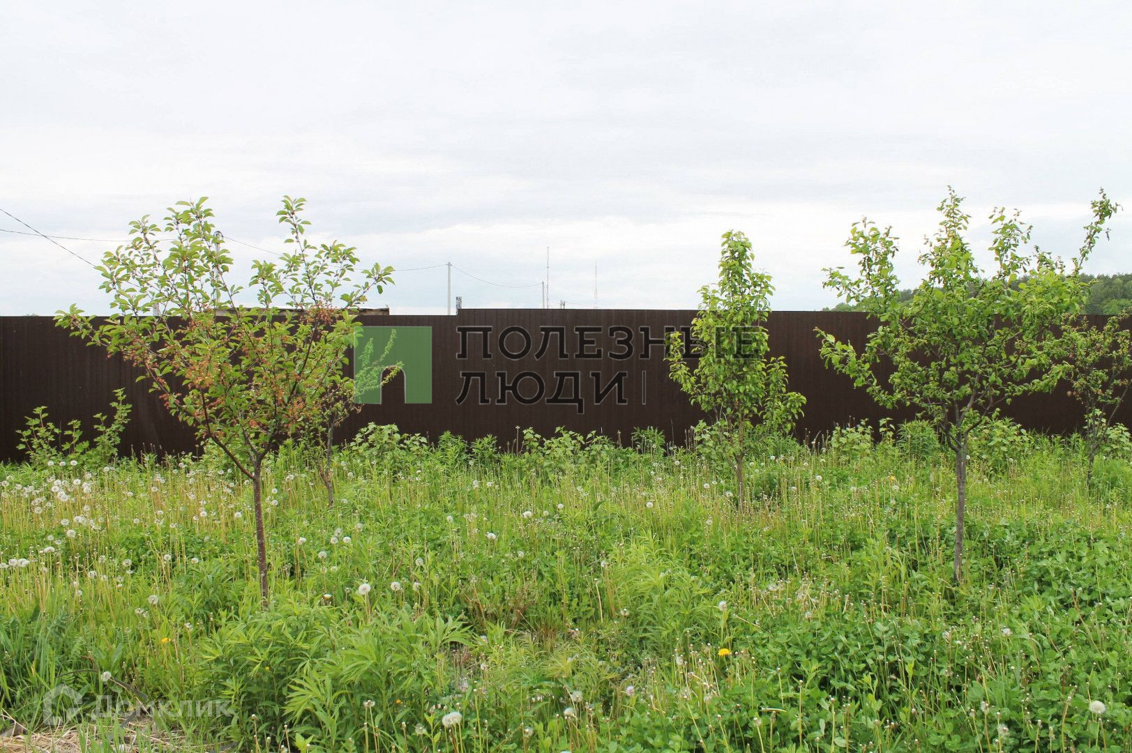 Участок ровный. Много плодовых деревьев (черешня), кустарников, большая плантация клубники.