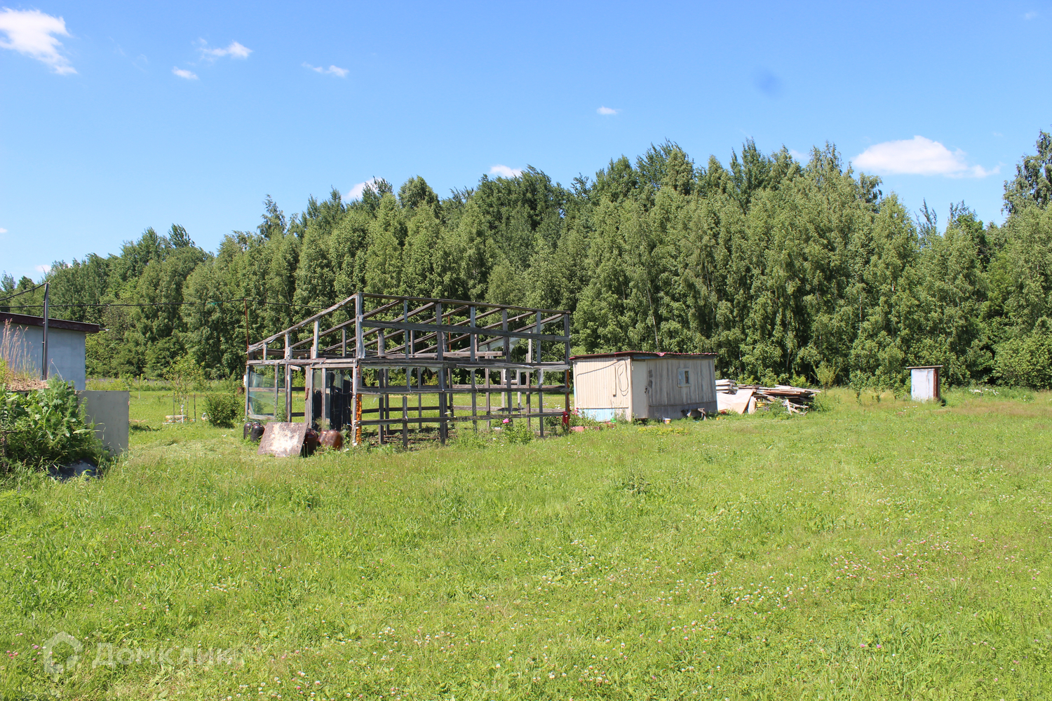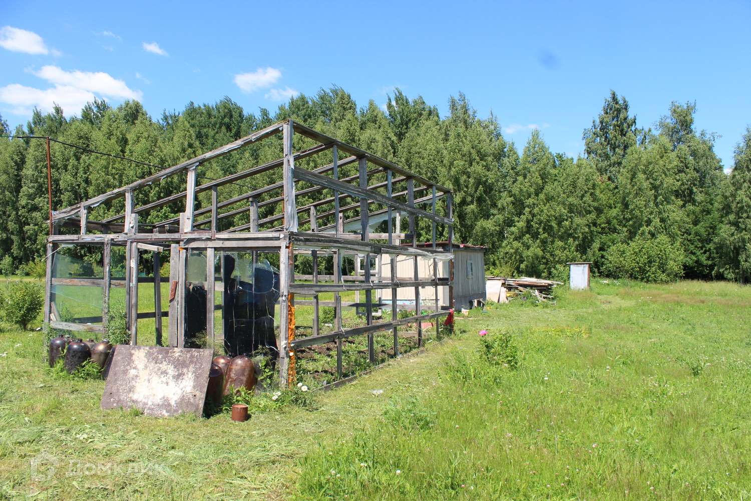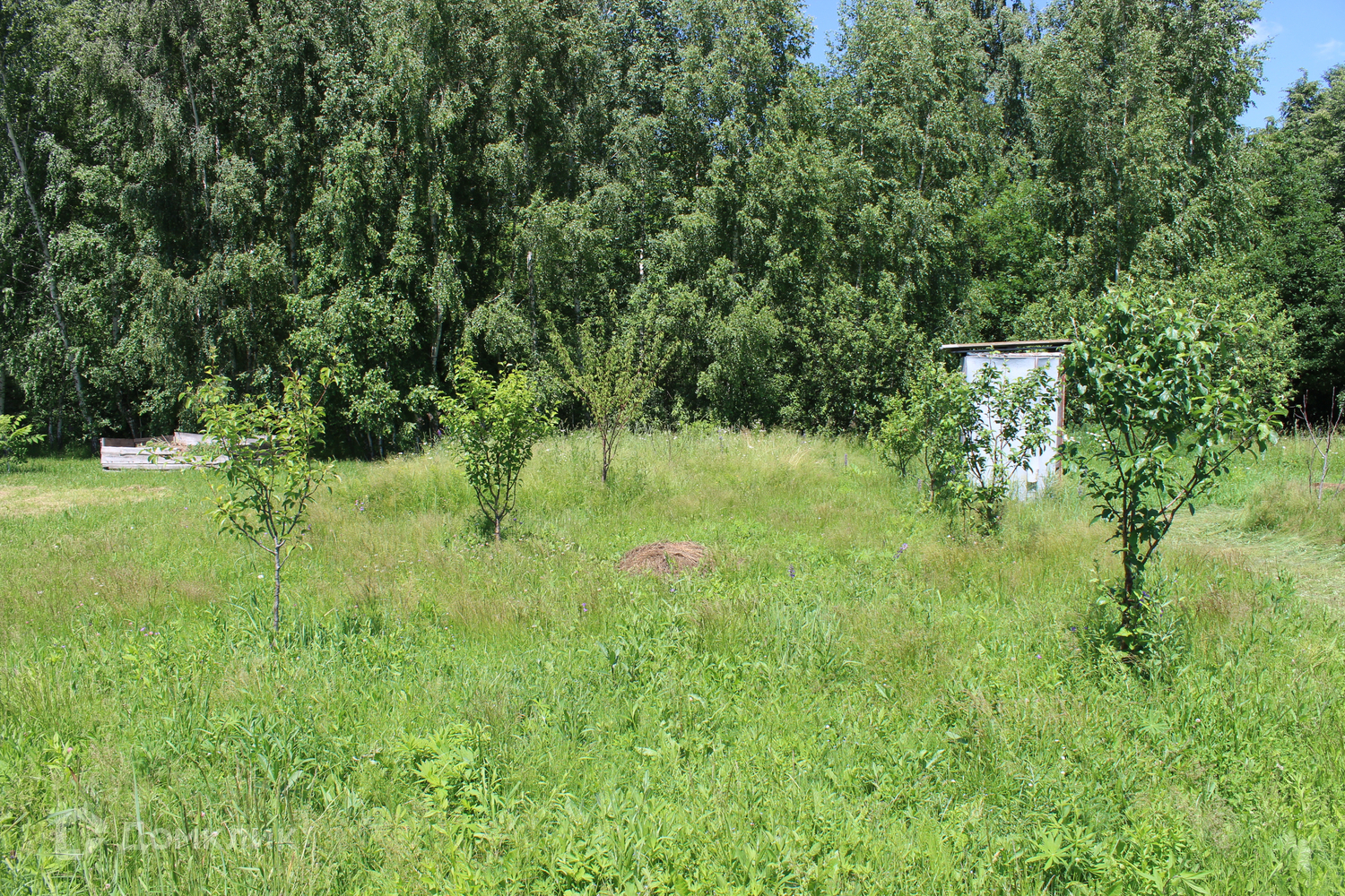 На участке имеется: погреб, самодельная теплица, туалет и маленький домик, также посажены 12 молодых деревьев ( яблоко, вишня, груша и абрикос).