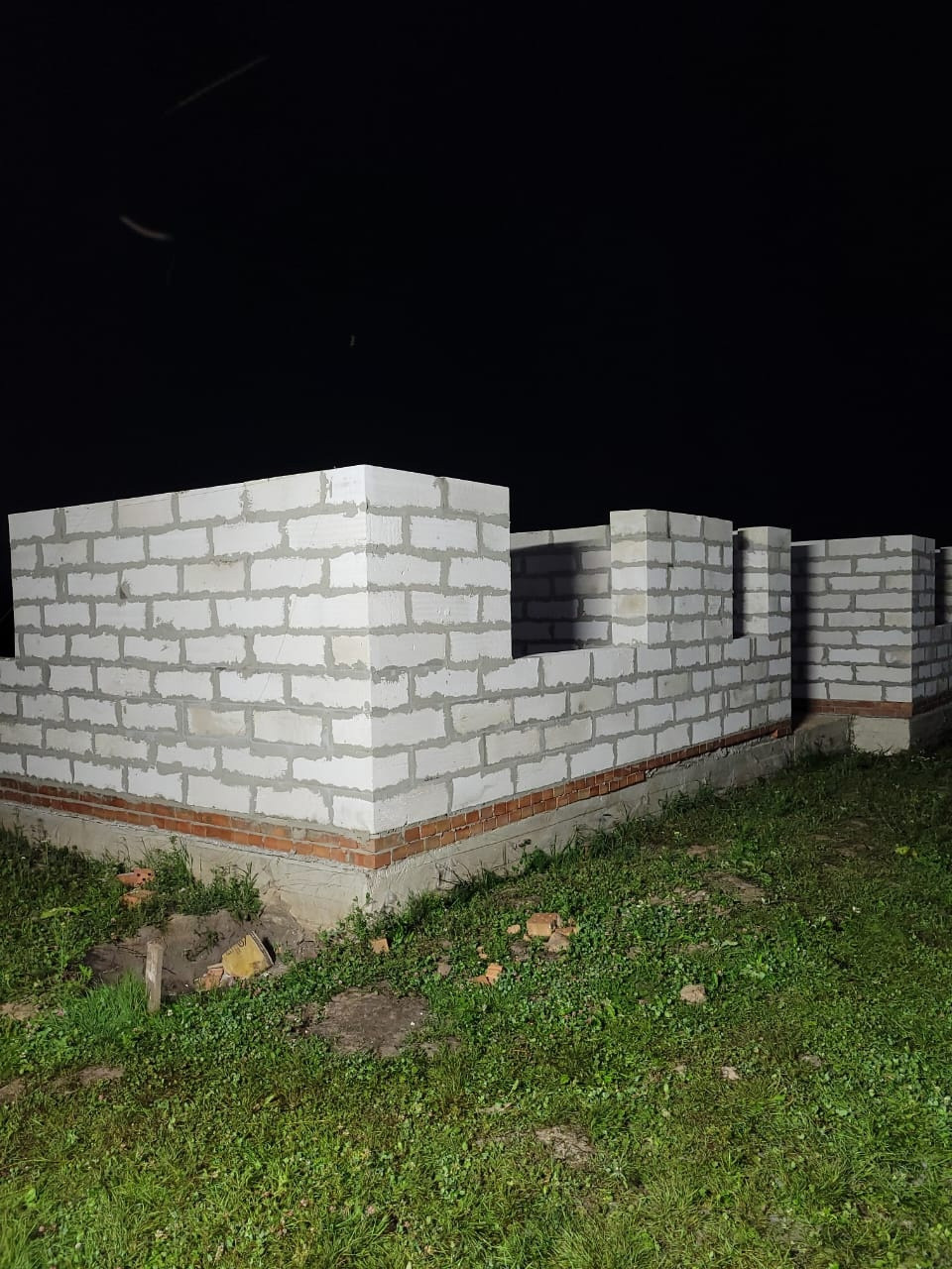 Продам участок, на котором строится дом (фундамент - лента, возведен первый этаж (стены - пеноблок). На участке есть свет, бытовка для ваших инструментов и тд (деревянная, размер 3*4), остаток кирпича. Подъезд к участку в любое время года хороший.