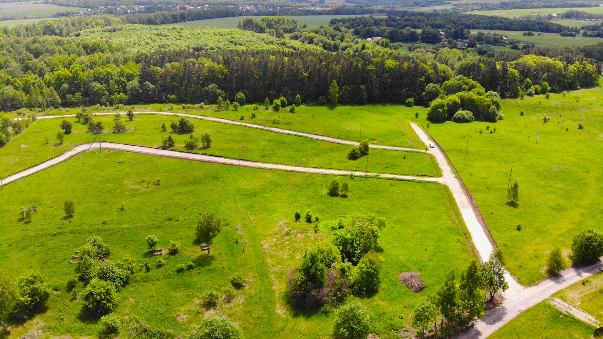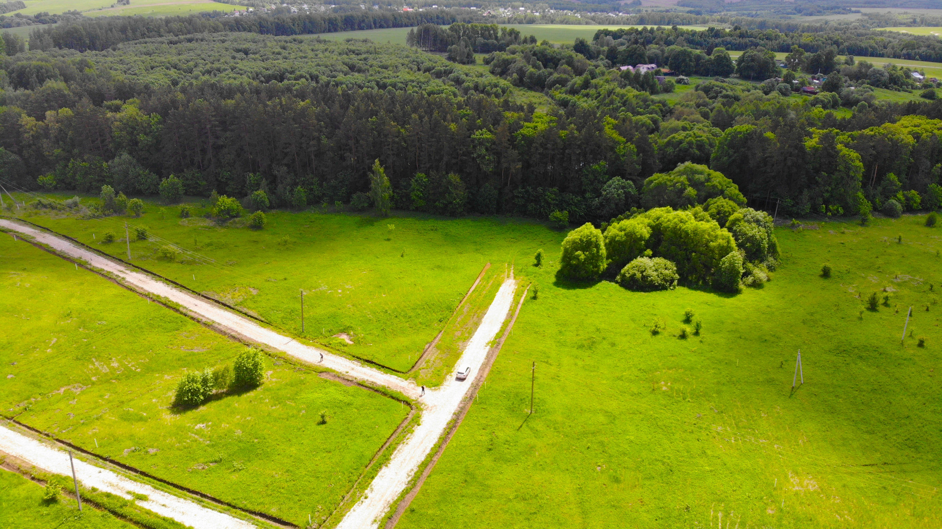 Участок правильной формы, ровный, сухой - подъезд осуществляется по асфальту и укатанной щебневой дороге (шириной 6м). Подведено электричество 15 кВт на 3 фазы - этой мощности хватит отопить целый дом.