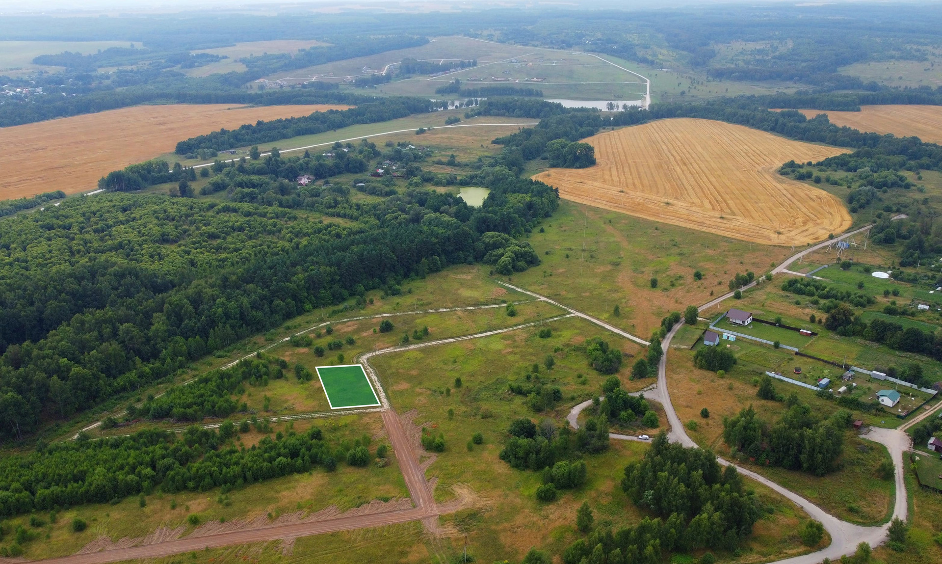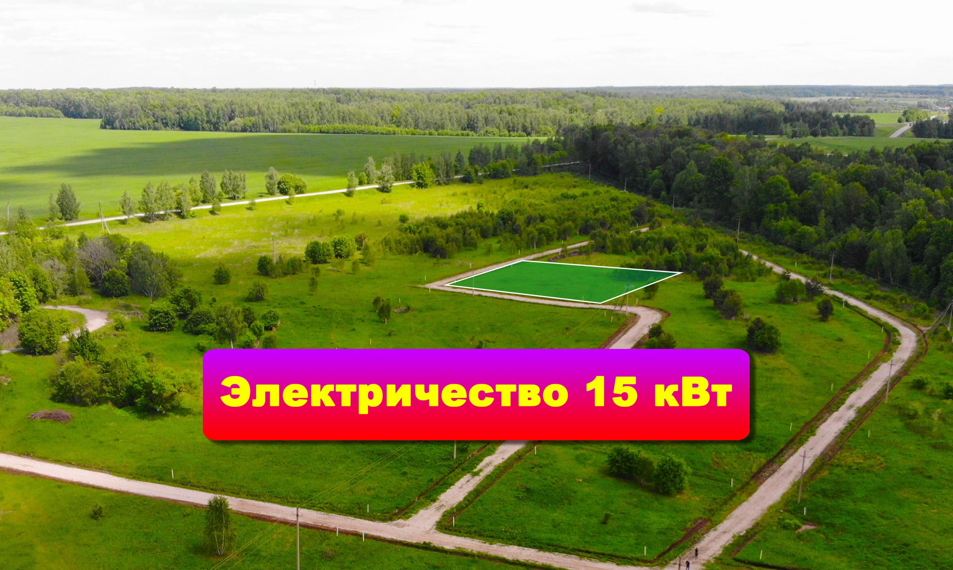 Участок правильной формы, ровный, сухой - подъезд осуществляется по асфальту и укатанной щебневой дороге (шириной 6м). Подведено электричество 15 кВт на 3 фазы - этой мощности хватит отопить целый дом.