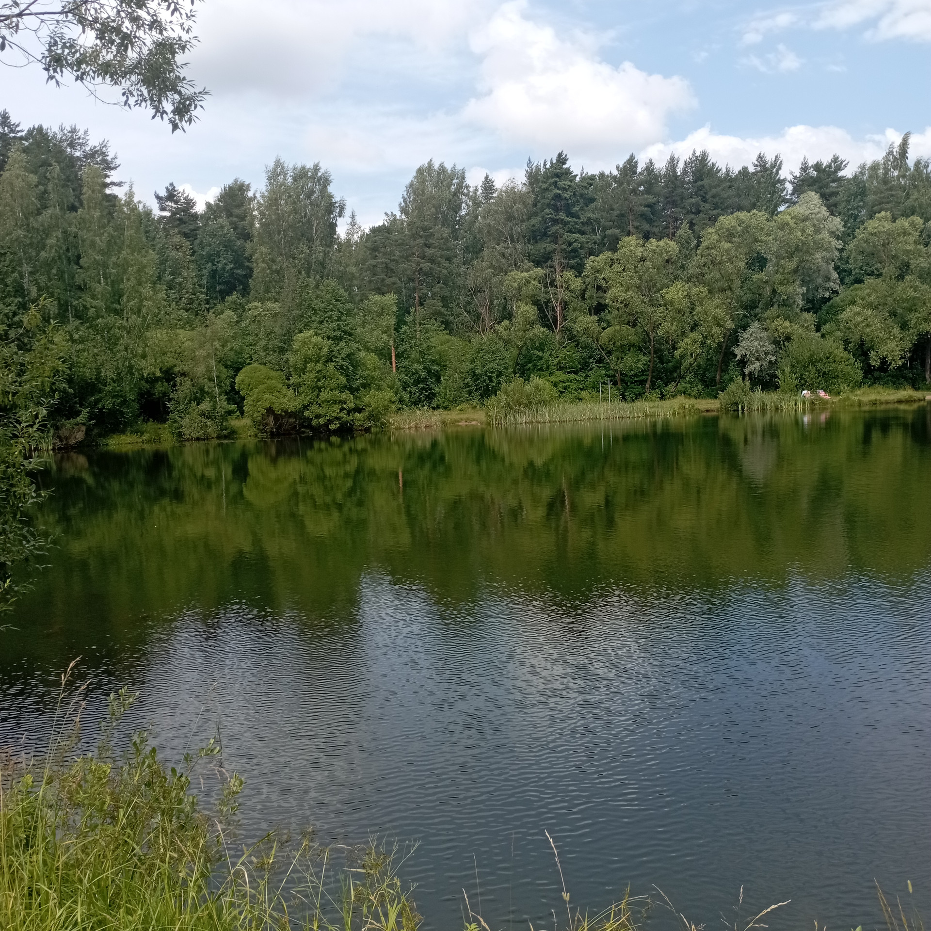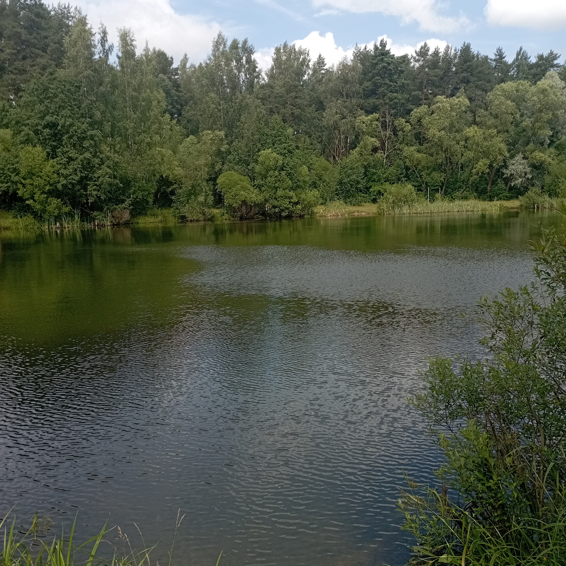 1.5 км прекрасное лесное озеро , где можно порыбачить и искупаться , вокруг природа, сосны , ягоды , грибы.