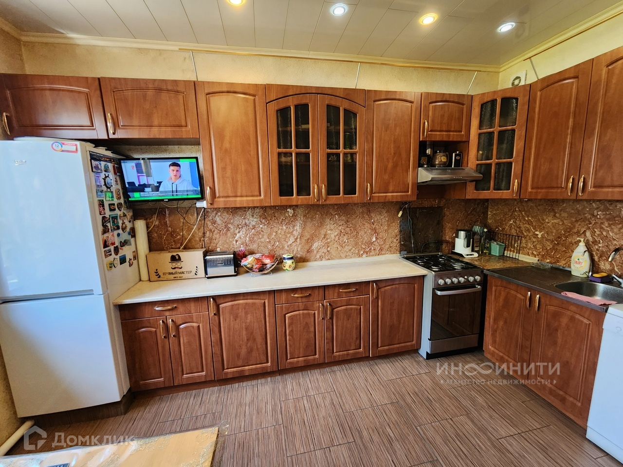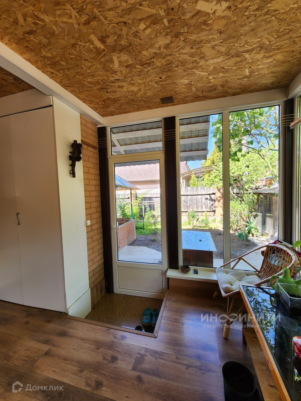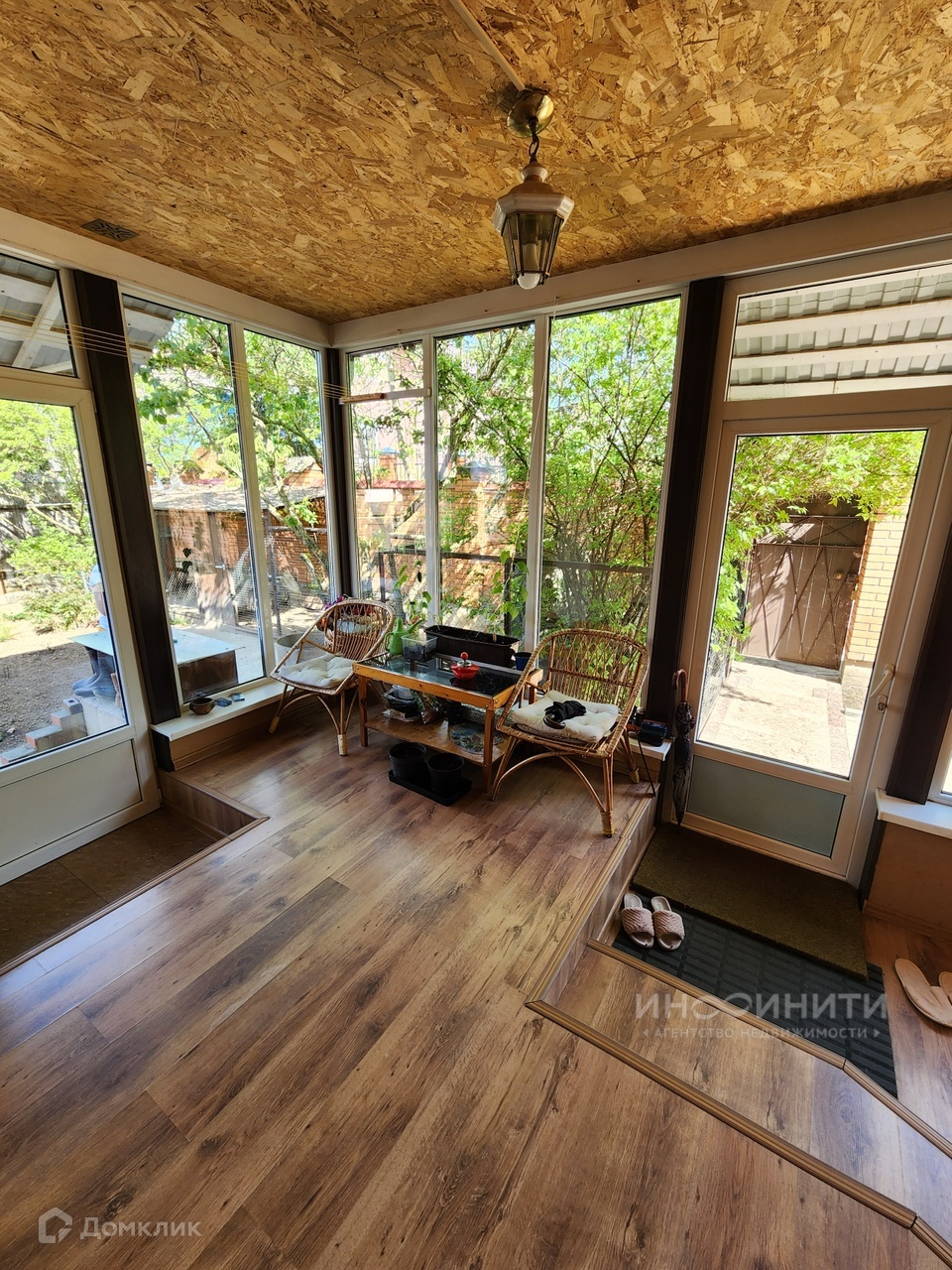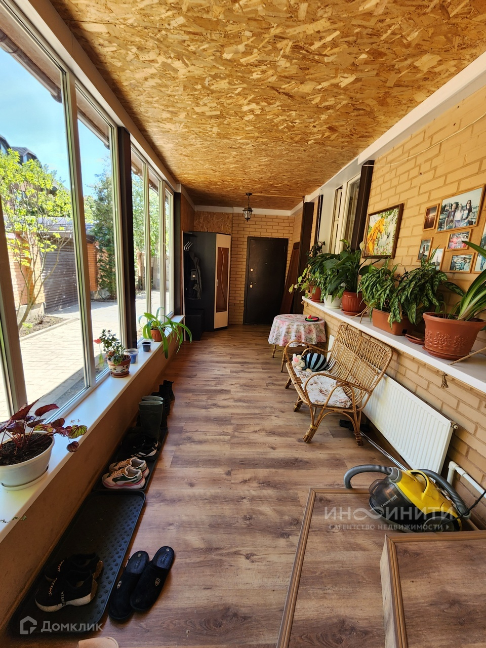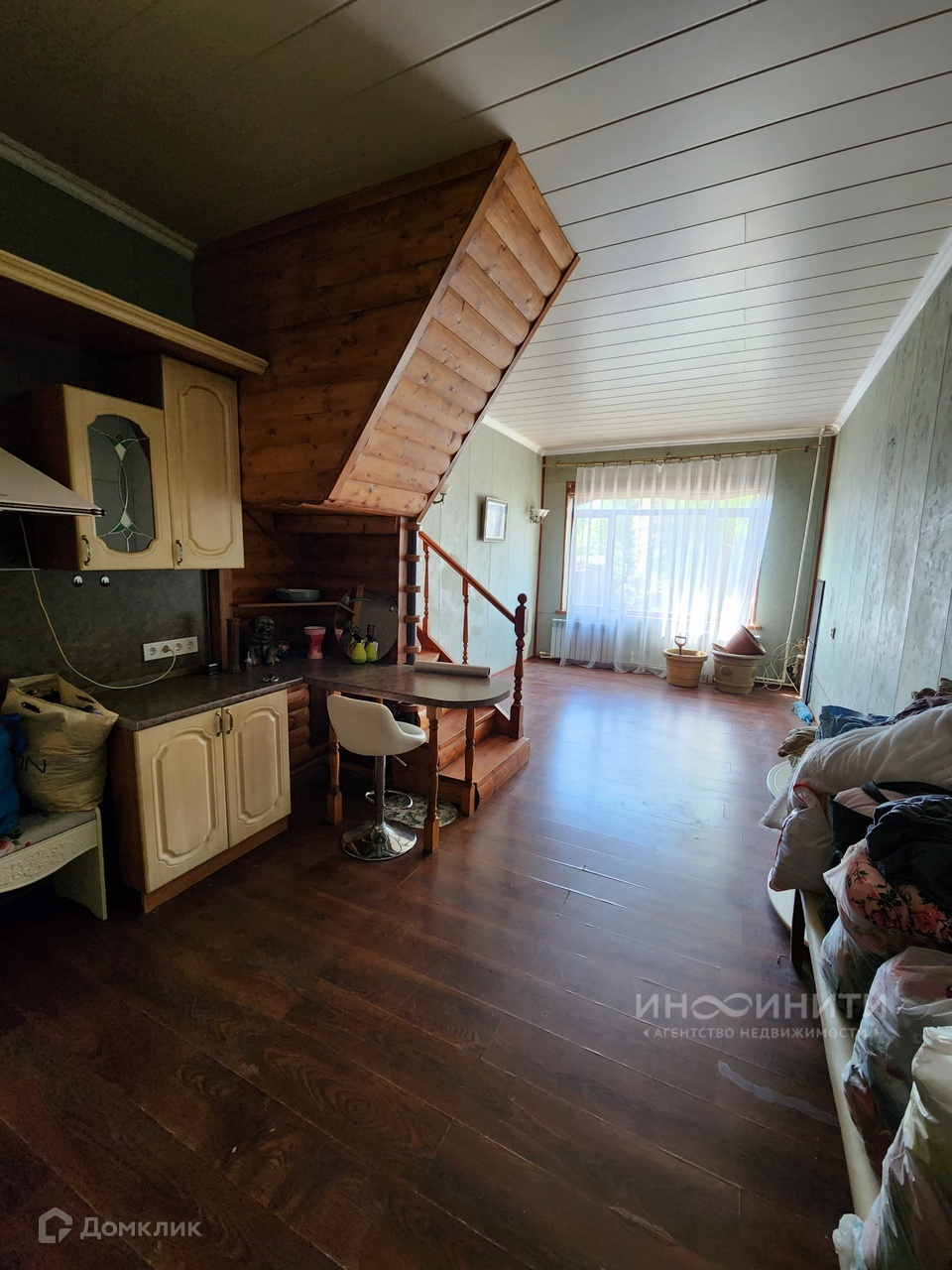 В доме могут проживать две семьи- его можно поделить на две части с отдельными входами и общим проходом внутри дома, есть две кухни-гостиные.