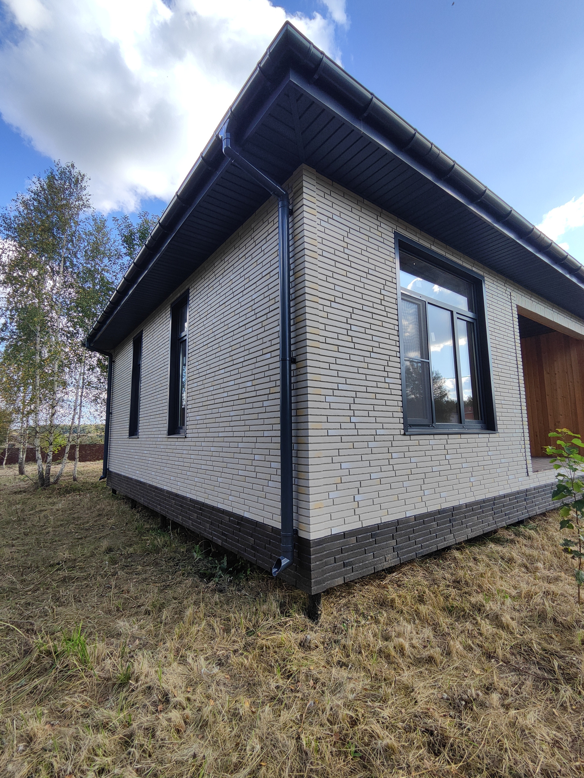 Дом снаружи отделан немецкими фасадными панелями DOCKE Klinker.Кровля-гибкая черепица DOCKE.Остекление-MELKE графит 70мм (энергосберегающий двухкамерный стеклопакет).Входная металлическая дверь с терморазрывом 120мм.Утепление: цокольное перекрытие-200мм,стены-150мм,чердачное перекрытие-200мм.Внутренние стены обшиты ГСП панелями.По дому разведены трубы водоснабжения,канализации.Электричество 15кв(380В) подключено и разведено по дому.Участку и дому присвоен адрес.
