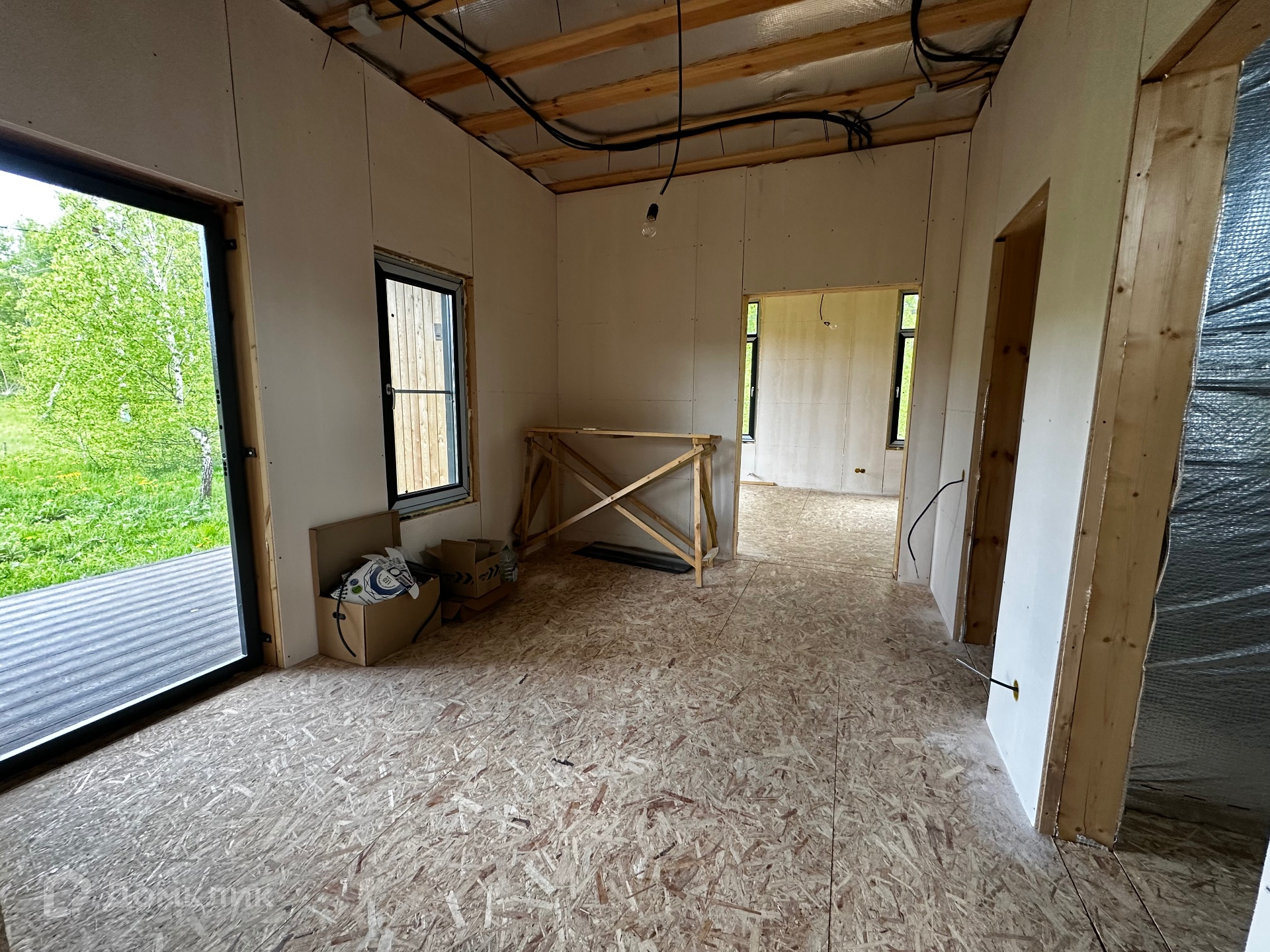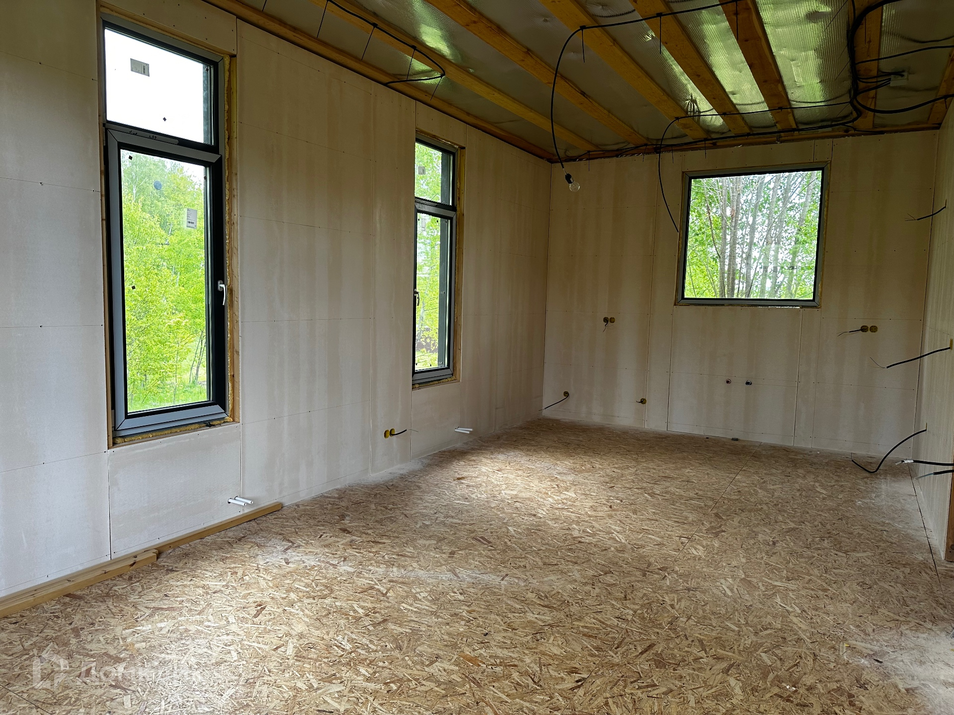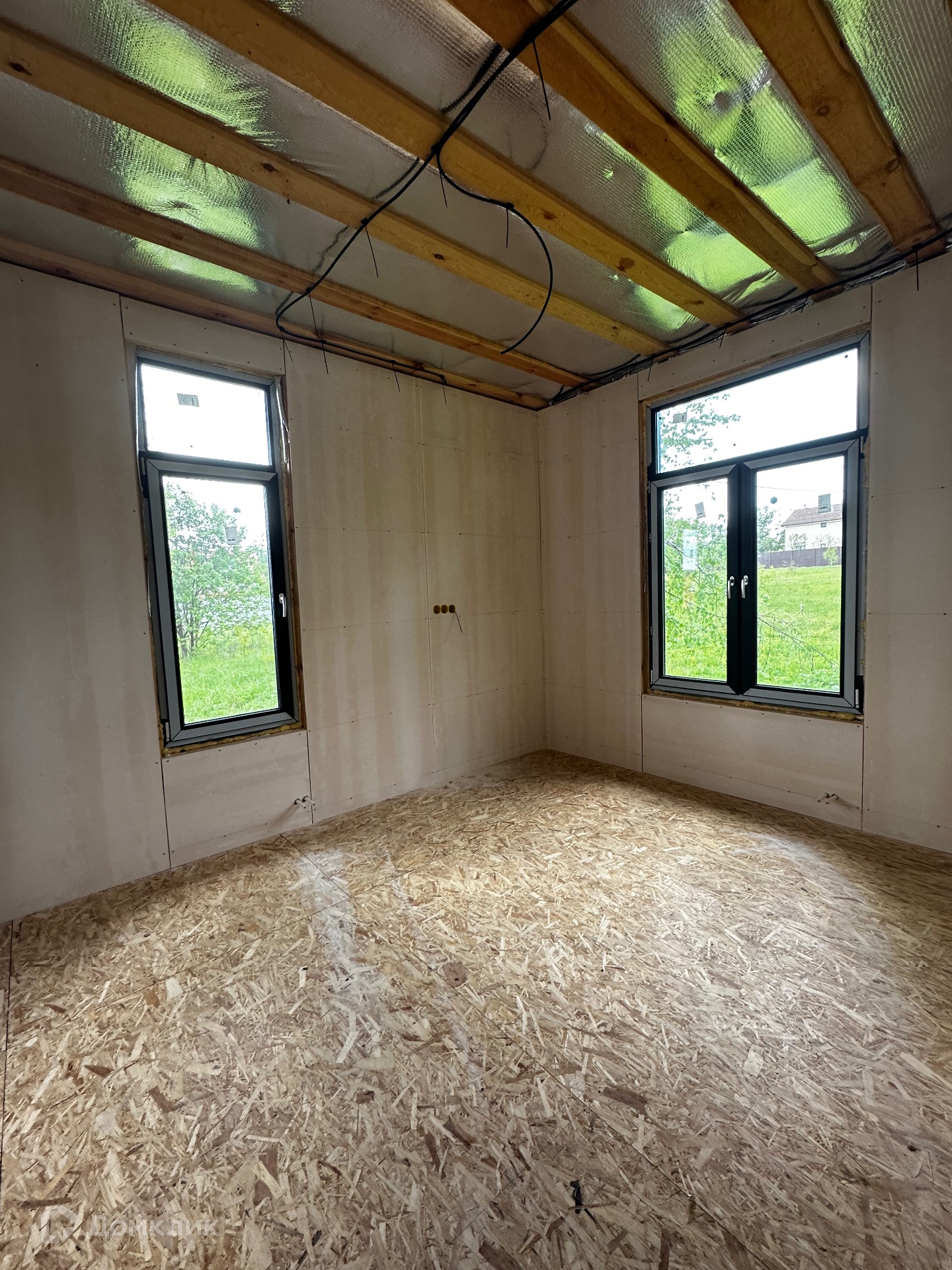 Дом снаружи отделан немецкими фасадными панелями DOCKE Klinker.Кровля-гибкая черепица DOCKE.Остекление-MELKE графит 70мм (энергосберегающий двухкамерный стеклопакет). Установлена входная металлическая дверь с терморазрывом 120мм.Утепление: цокольное перекрытие-200мм,стены-150мм,чердачное перекрытие-200мм.Внутренние стены обшиты ГСП панелями.По дому разведены трубы водоснабжения,канализации.Электричество 15кв(380В) подключено и разведено по дому.Участку и дому присвоен адрес.