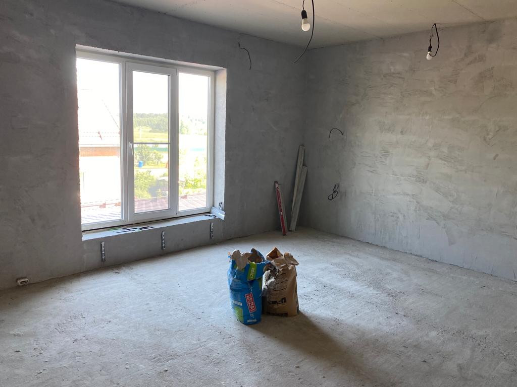 К дому в 2021 году пристроили баню с санузлом и кладовым помещением, баня стоит тоже на монолитной плите с наличием подвала под баней размером 5м на 5м. В доме периодически продолжаются работы , на втором этаже ванная почти закончена , имеется плитка для туалета и коридора второго этажа. В гардеробной и одной спальне выполнен ремонт под ключ. Потолки второго этажа выполнены из гипсокартона .