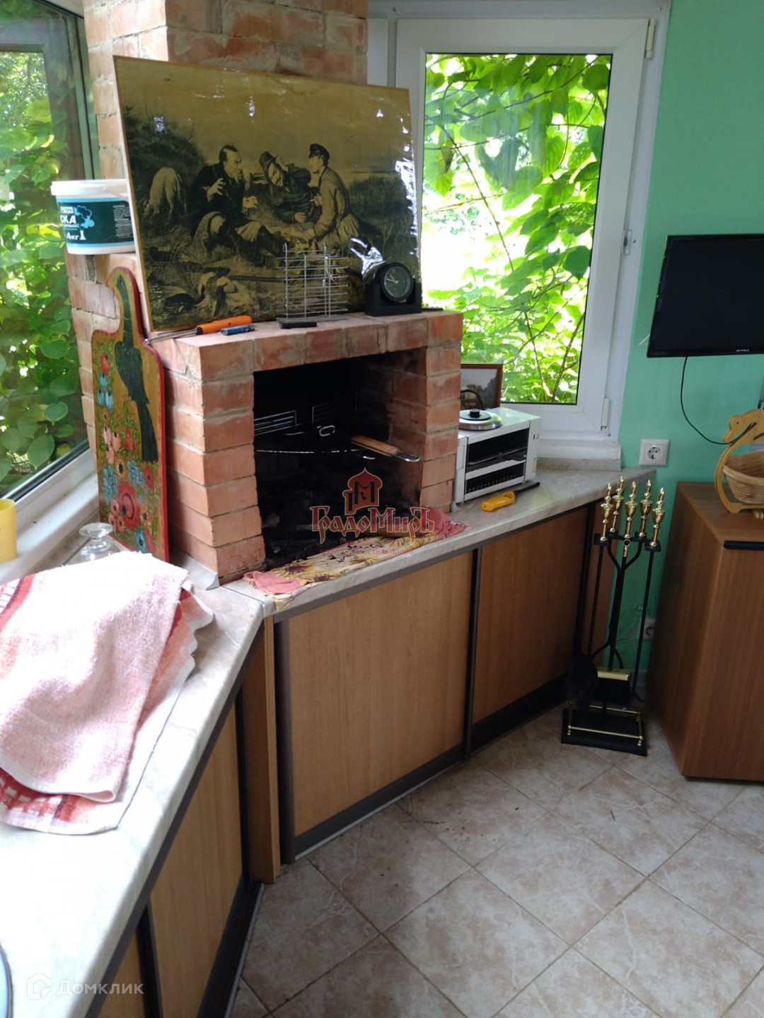 Уютная и просторная зона барбекю с мангалом, можно использовать круглый год.